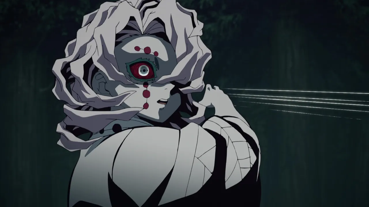 Now split into three, the demons have driven Tanjiro into a corner. It is then that Nezuko attacks. Now that she’s become a demon herself, she’s no longer so weak that she needs protection. His mind made up, Tanjiro follows one of the demons into the swamp now spreading across the ground. Waiting for him there is...