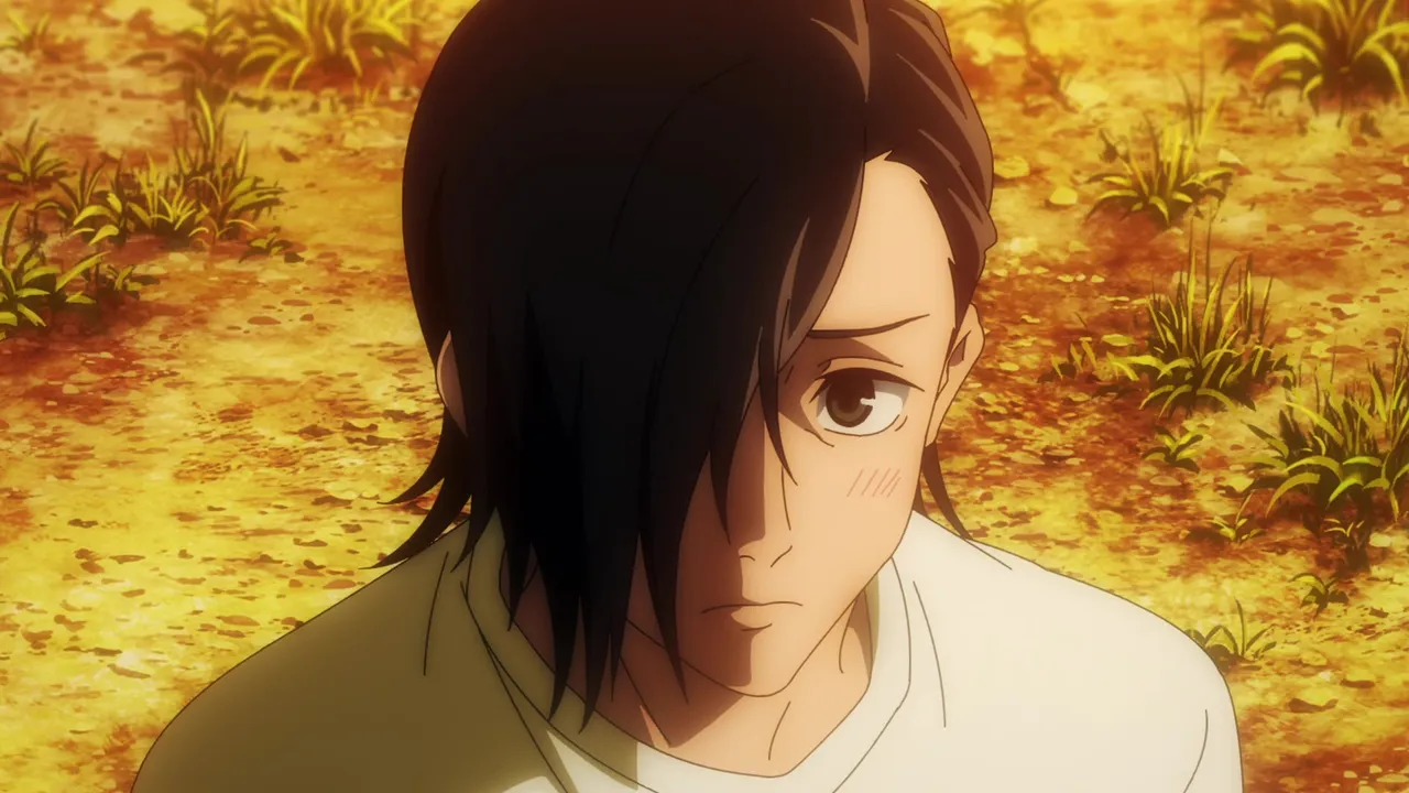 Itadori and Todo join the battle against Hanami. Itadori lands his Black Flash, and his Todo unleashes his cursed technique as they keep up their combo attack. Alongside his "brother", Itadori, Todo overwhelms Hanami with his tricky cursed technique and his clever, (self-proclaimed) 530,000 IQ mental CPU, but--