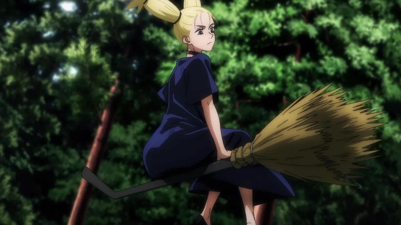 The Exchange Event's Group Battle continues! Maki and Miwa face off, but Miwa can't hide her surprise at the overwhelming strength Maki displays despite her grade ranking. At the same time, Kugisaki pursues Nishimiya as she flies around on her broom. Nishimiya talks about Mai's hardships and what it's like to live as a female jujutsu sorcerer, but Kugisaki cuts her off and counterattacks. Then Mai reveals herself and-