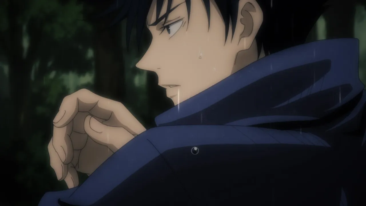 After retreating outside the juvenile detention center, Fushiguro notices the death of the special grade cursed spirit. The very next moment Ryoumen Sukuna appears beside him, and rips Itadori's heart from his body to take him hostage. Fushiguro begins fighting Sukuna to prevent Itadori from dying when he regains control, but he becomes painfully aware of the difference in their strength.