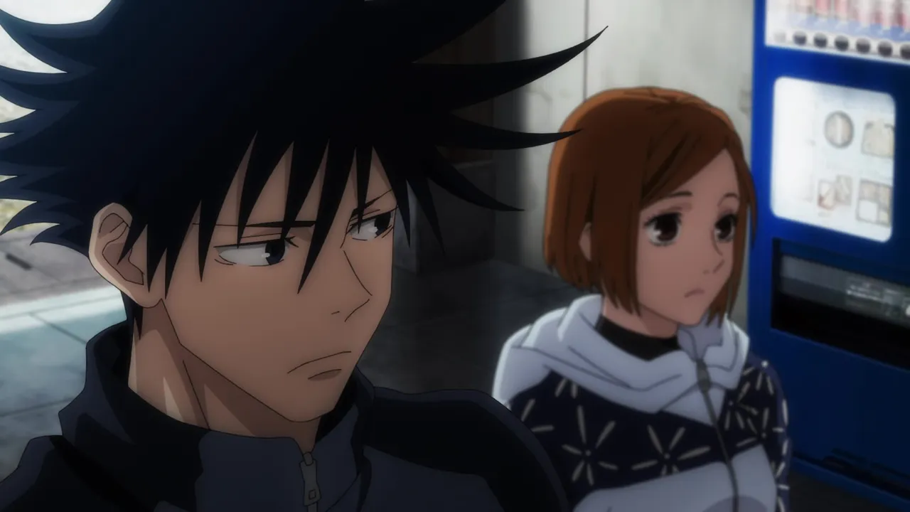 While they're training for the exchange event, Kugisaki and Fushiguro come face to face with Kyoto's Jujutsu Tech second years - Zen'in Mai and Toudou - who challenge them to a fight. Toudou overwhelms Fushiguro with physical strength. Meanwhile, Kugisaki is disgusted by Mai's comments and says something to provoke her, but-