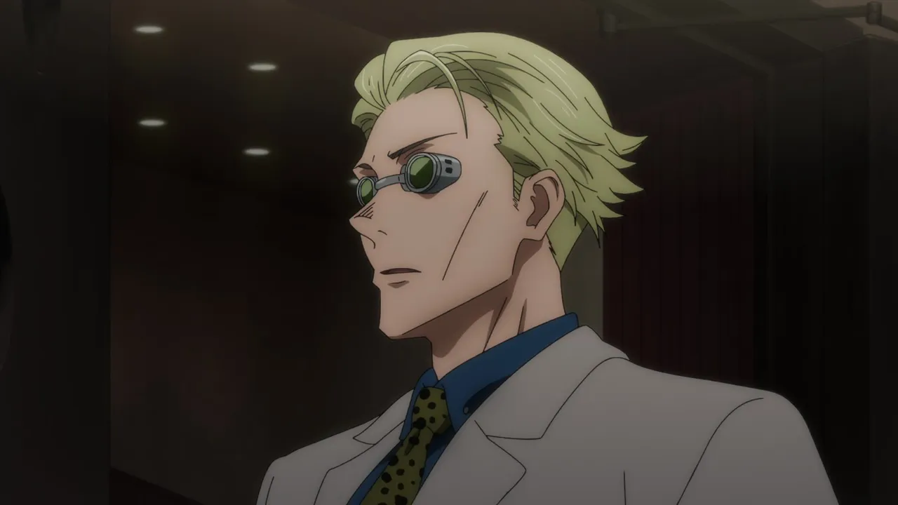 Yoshino Junpei skips school to go to a movie theater, but then he witnesses the classmates who bullied him getting their faces transfigured and dying. He chases after the culprit and calls out to them. Later, Itadori and the ex-salaryman first-grade jujutsu sorcerer, Nanami Kento, storm into the scene of the crime within the theater and encounter two cursed spirits.