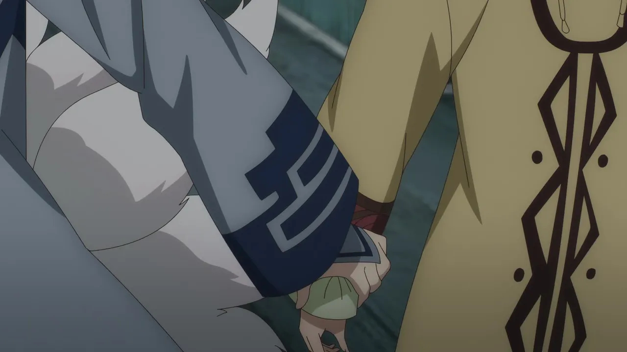 After they come back to Tenjin-ya, the snow woman O-Ryo collapses from fever and Aoi ends up looking after her with her cooking. Then, a fight breaks out between Suzuran, who wants to go to the apparent realm, and Akatsuki, who is against her going.