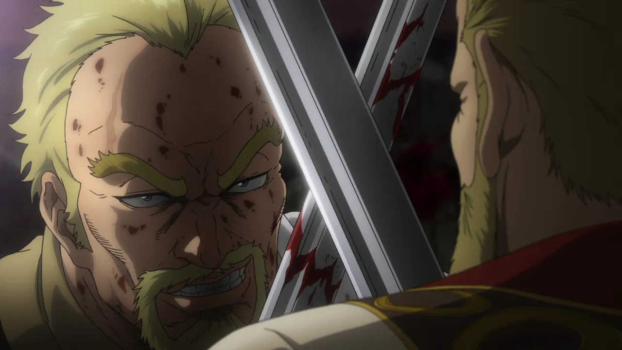 Thorfinn and Thorkell agree to have a duel over the fate of Askeladd. Thorkell looks forward to facing off against Thors’s son, Thorfinn, and asks him what a true warrior really is. Meanwhile, Canute is suddenly ambushed while he attempts to escape, and has a dream about a certain individual.
