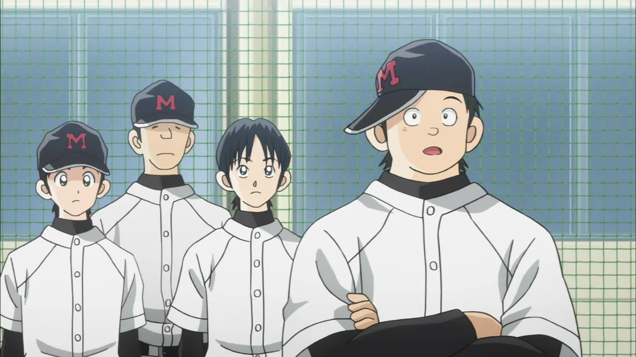 Meisei loses their match to Seinan after Nikaidou has a bad inning. Nishimura, Seinan’s pitcher, tries to convince the Tachibana brothers to transfer to his team.