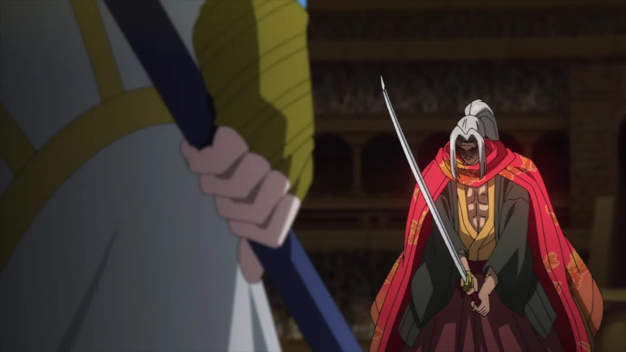 Despite Kojiro's Niten Ganryu duel blade method, Poseidon's powerful attacks continue to wear him down. But the battle isn't over yet.
