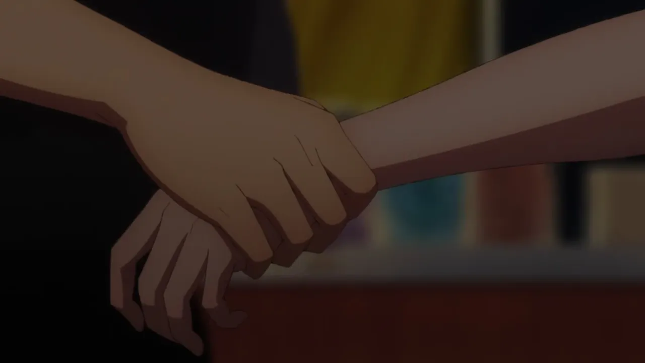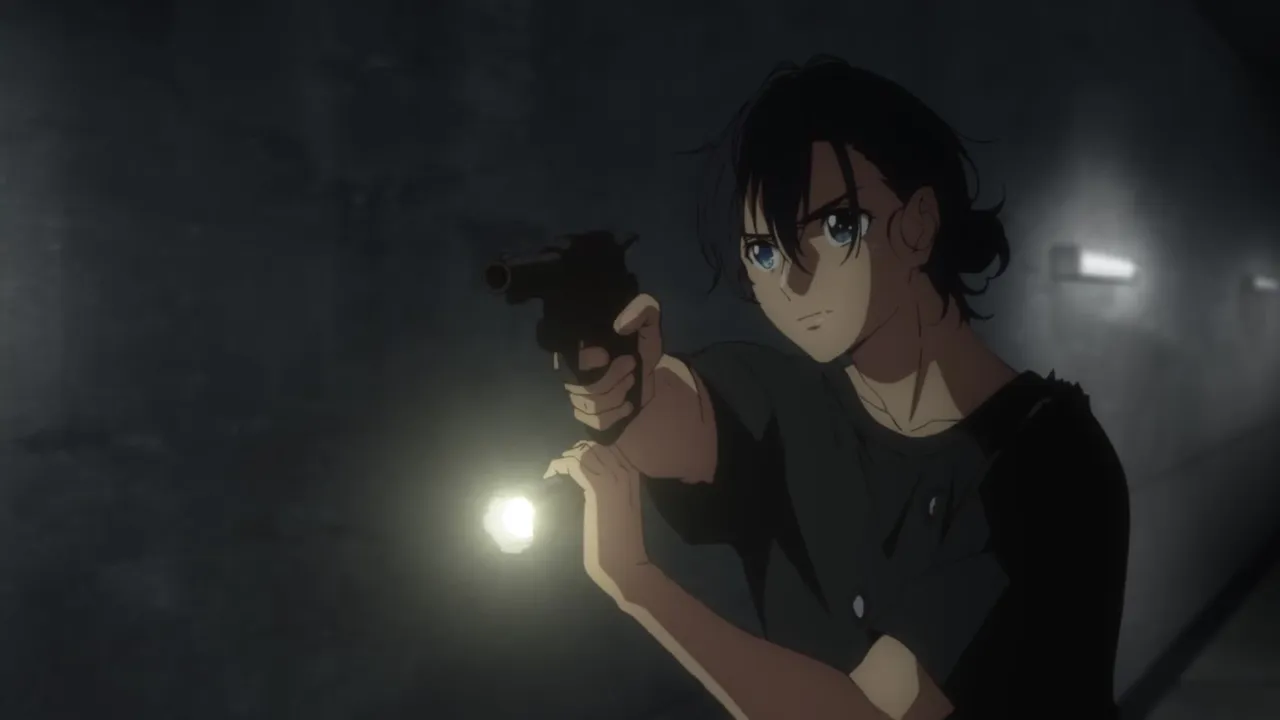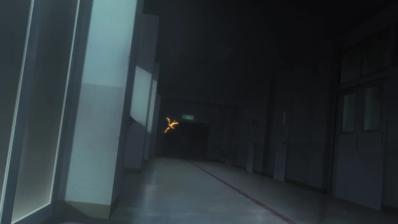 Mio's shadow appears before Shinpei and threatens him with a knife.