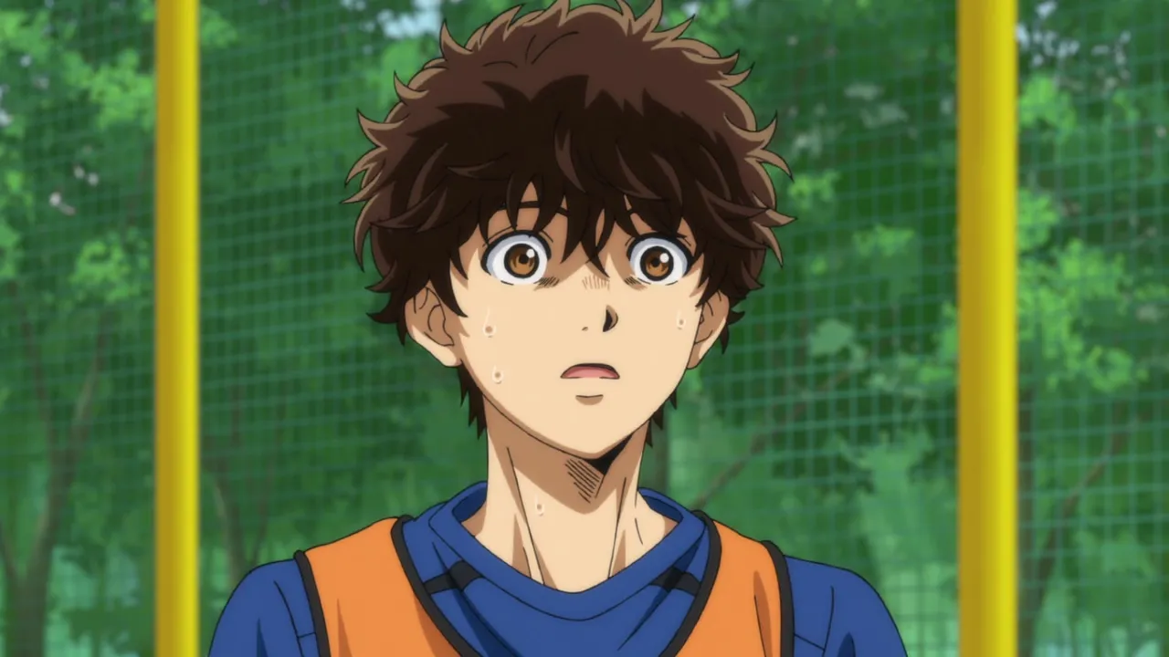 Advised by Takeshima and Anri that he should study Kuribayashi's movements, Ashito pours over the broadcast of the J1 match to see Kuribayashi's play. Combing over the past footage of Kuribayashi's play, Ashito realizes that what set Kuribayashi apart is how he turns his head. Ashito tries to incorporate it in his practice right away, but it only confuses him. In his teammates eyes, that confusion looks like being unmotivated for having to play a full-back.