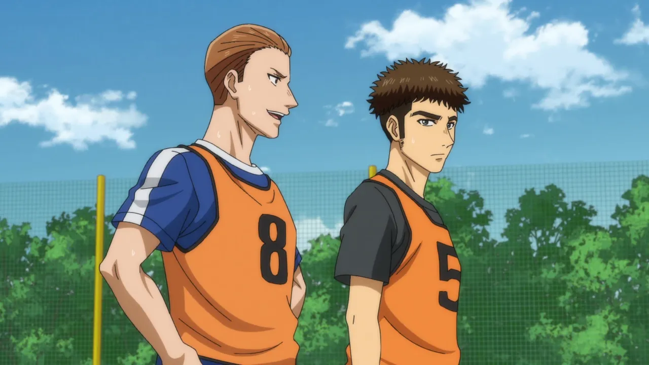 Ashito and others have an unexpected reunion with Nakano and Kaneda, who played alongside him at the tryouts. After failing the tryouts for Esperion, Nakano and Kaneda joined the current top team in the league, Tokyo Musashino Soccer Club Youth, where Tachibana used to play. While Nakano is happy to see Ashito and others, Kaneda blames Ashito for his failing the tryouts.