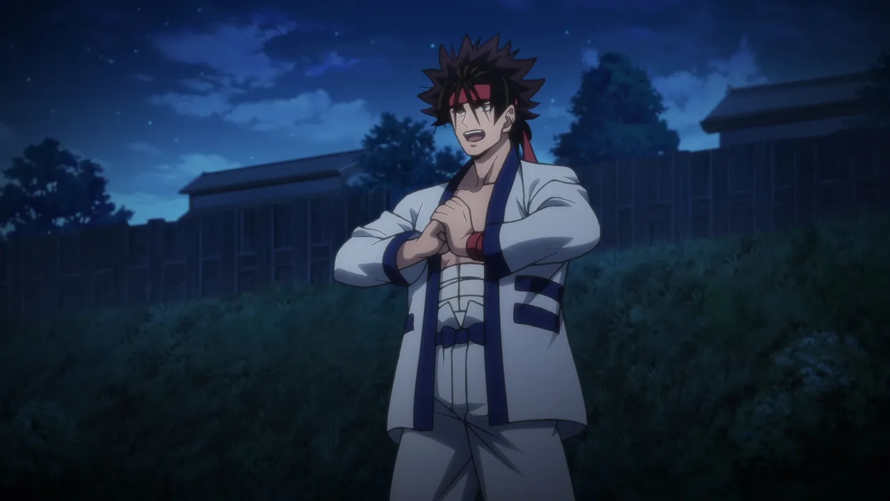 Yutaro sustains a heavy injury from Raijuta's sword, and it is so severe that he will never be able to swing a sword with that arm ever again. Although Yahiko was constantly disagreeing with Yutaro until now, he understood very well what swordsmanship meant to him. He takes Yutaro's hand and leads him out of the medical room, so they could witness the final battle between Kenshin and Raijuta. Deep in the night on a woodland path, Kenshin and Raijuta's duel begins.