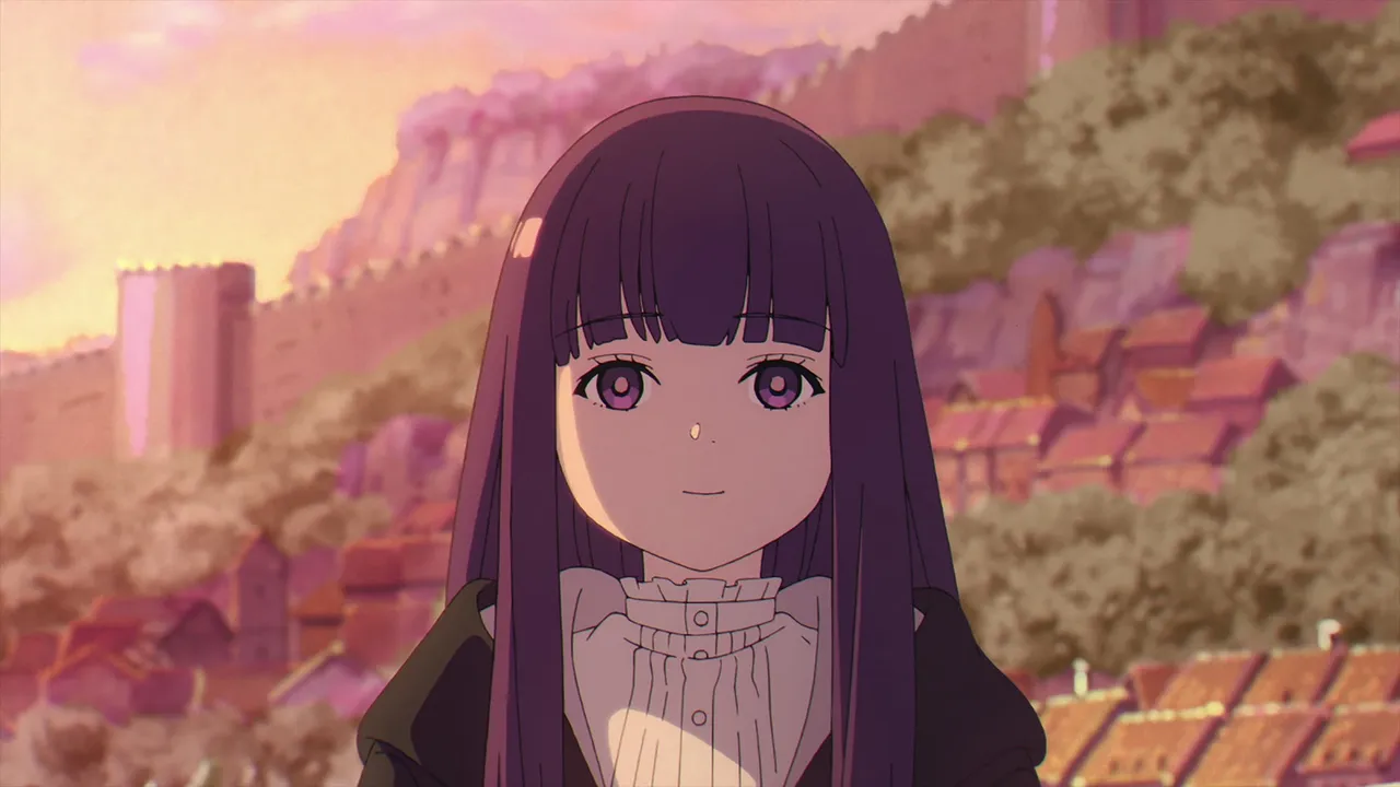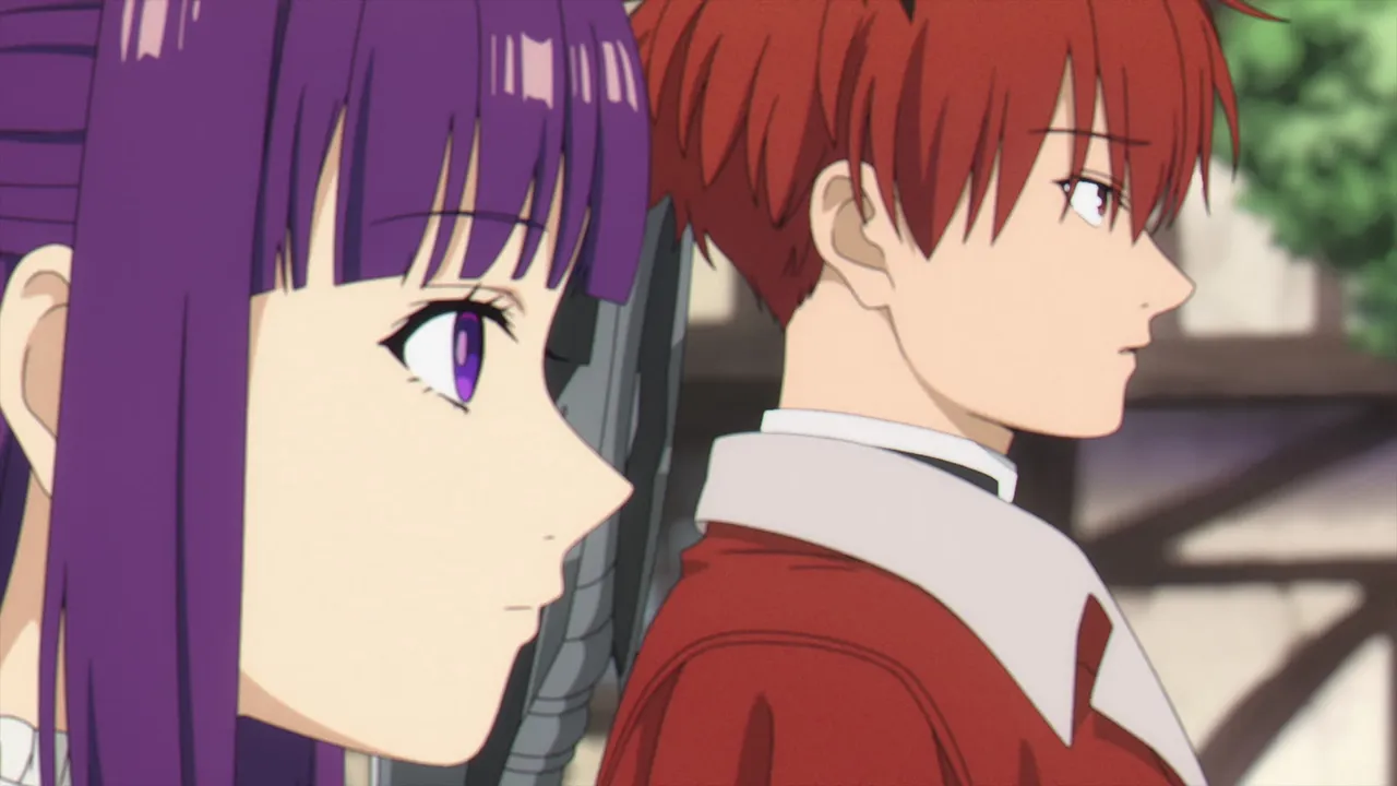 The party arrives in a large and lively town with a bustling shopping district that Frieren once visited with Himmel, but something seems to have come up between Fern and Stark.