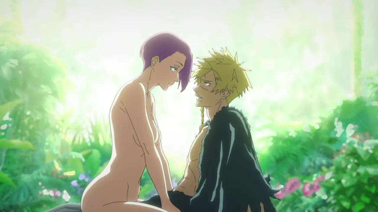 Aza Chobe and Gabimaru lose themselves in battle, but Mei stops their fight.