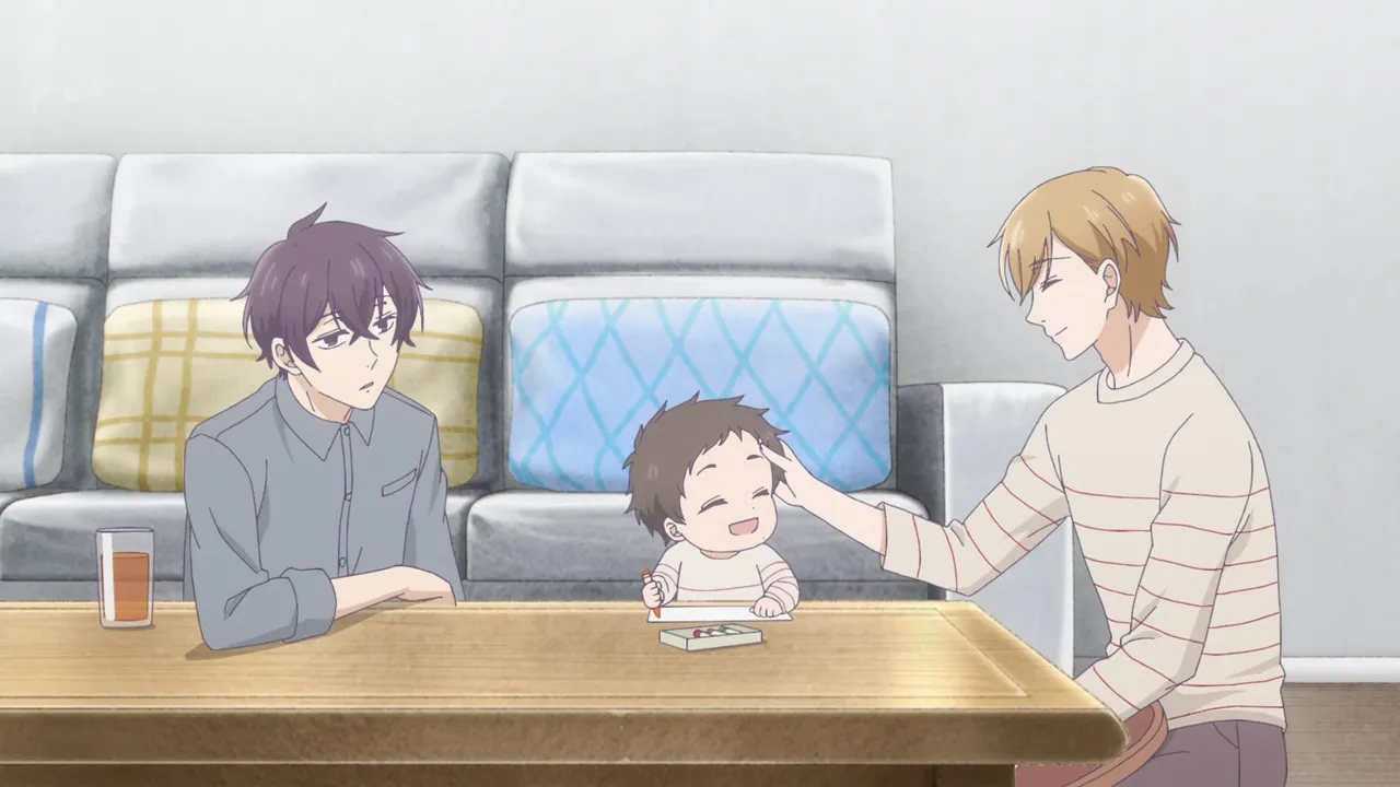 Masaki and Hikari encounter another new neighbor at the park: single father Mochizuki, who is trying to hold things together for his son Michiru after the loss of his spouse. Masaki offers to help.