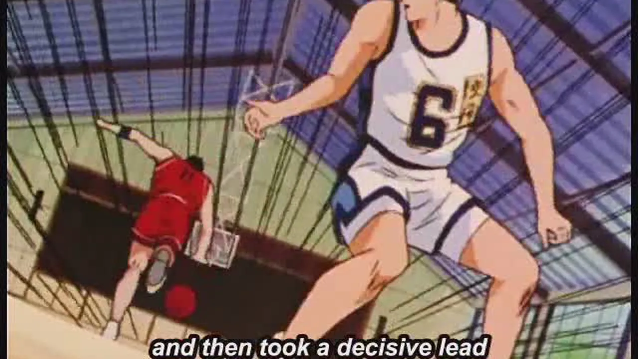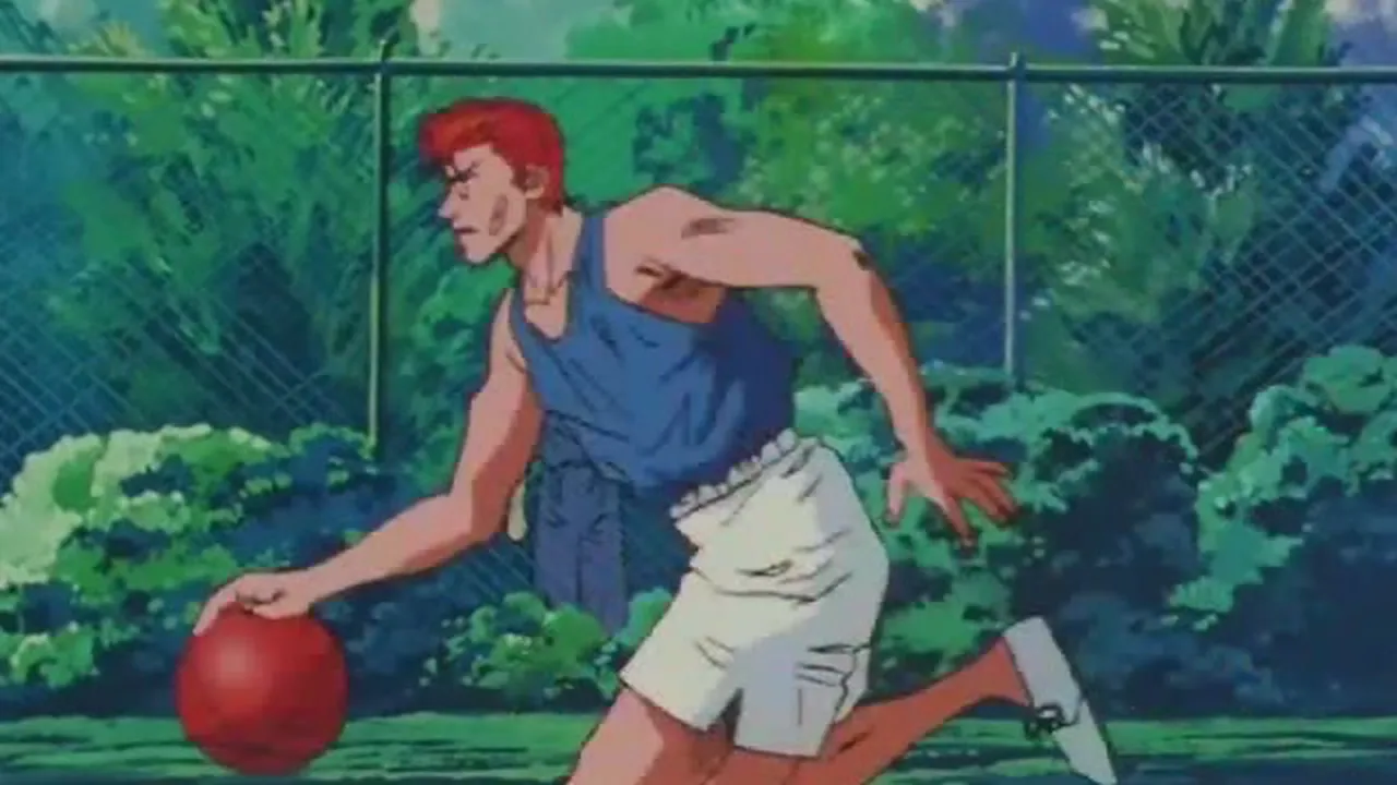 After successfully persuading Anzai to let him join the game, Sakuragi shows how much he has improved in basic skills such as dribbling. But in the game, he refuses to pass the ball to Rukawa out of jealousy.