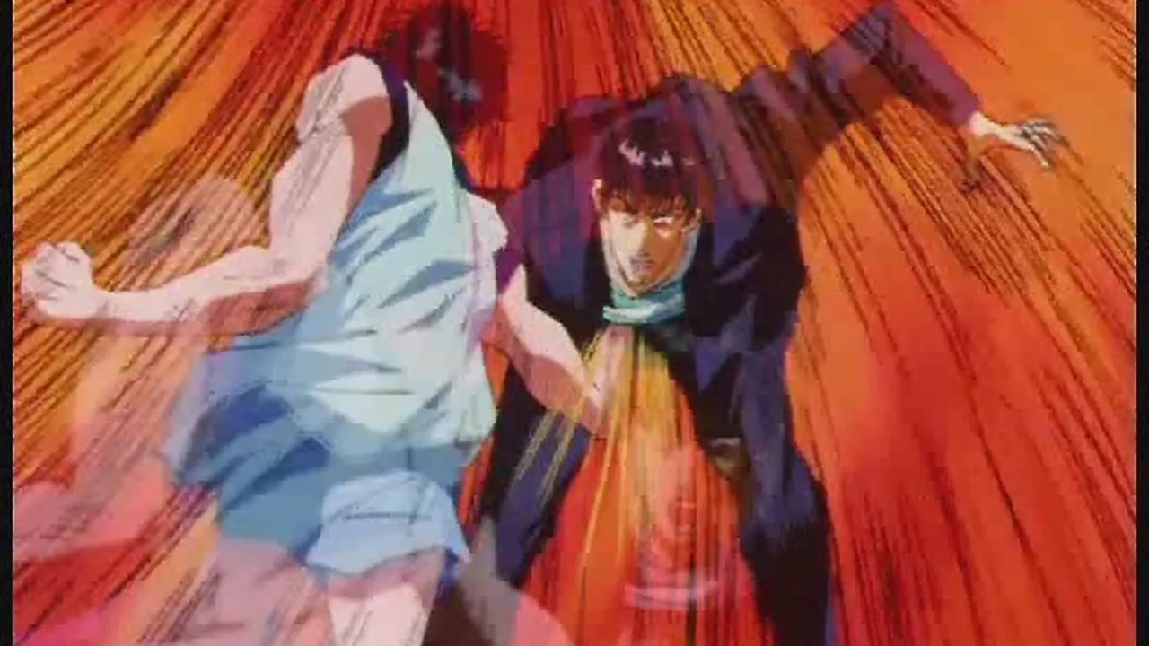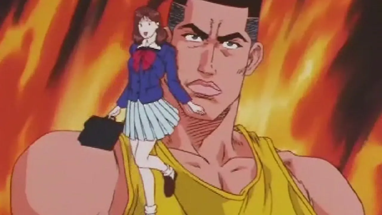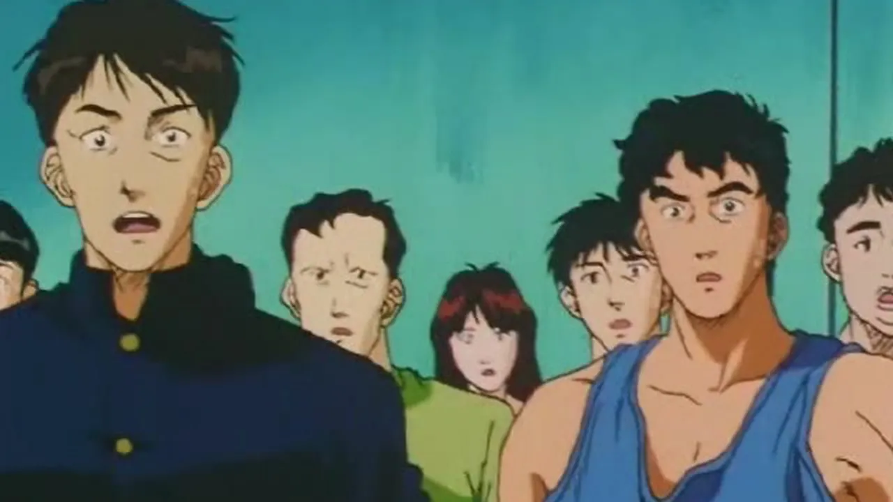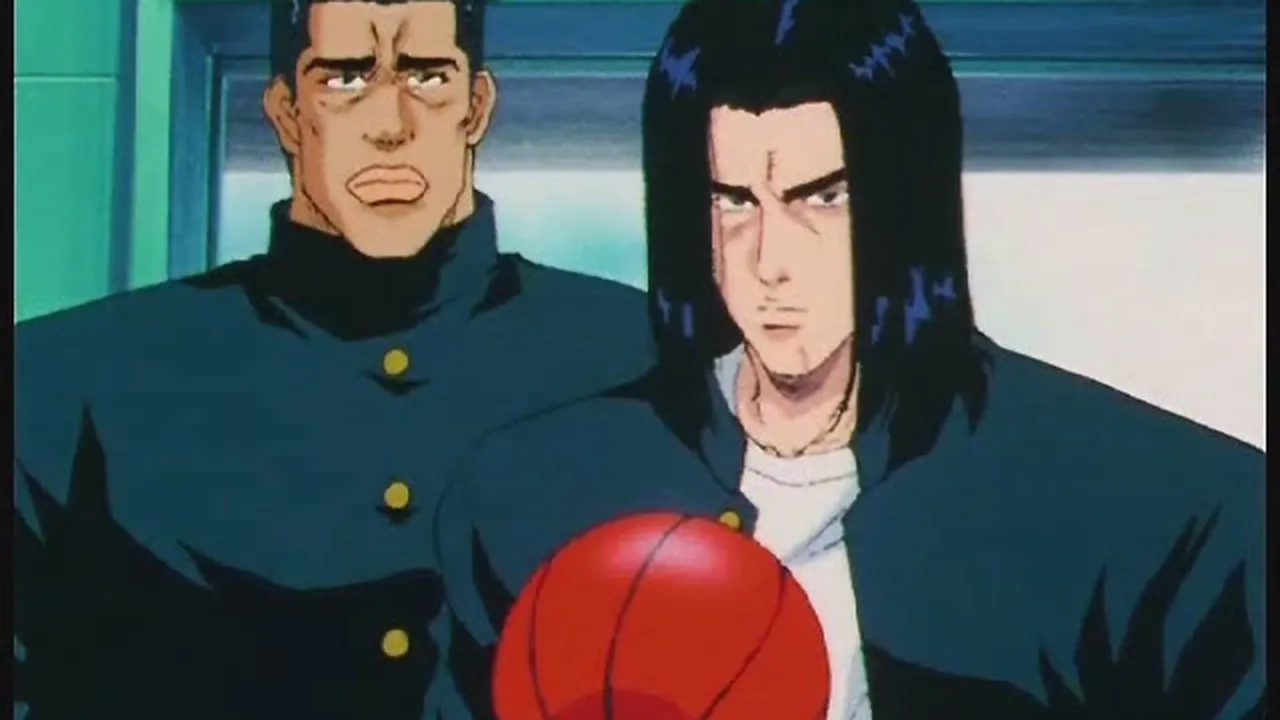 After Ayako was slapped by one of the invading students, Miyagi joined in the fight, as well as Rukawa. However, Tetsuo easily took both of them down. Sakuragi steps up to the plate, outnumbered. Things change when Sakuragi's friends appear in an unlikely fashion.
