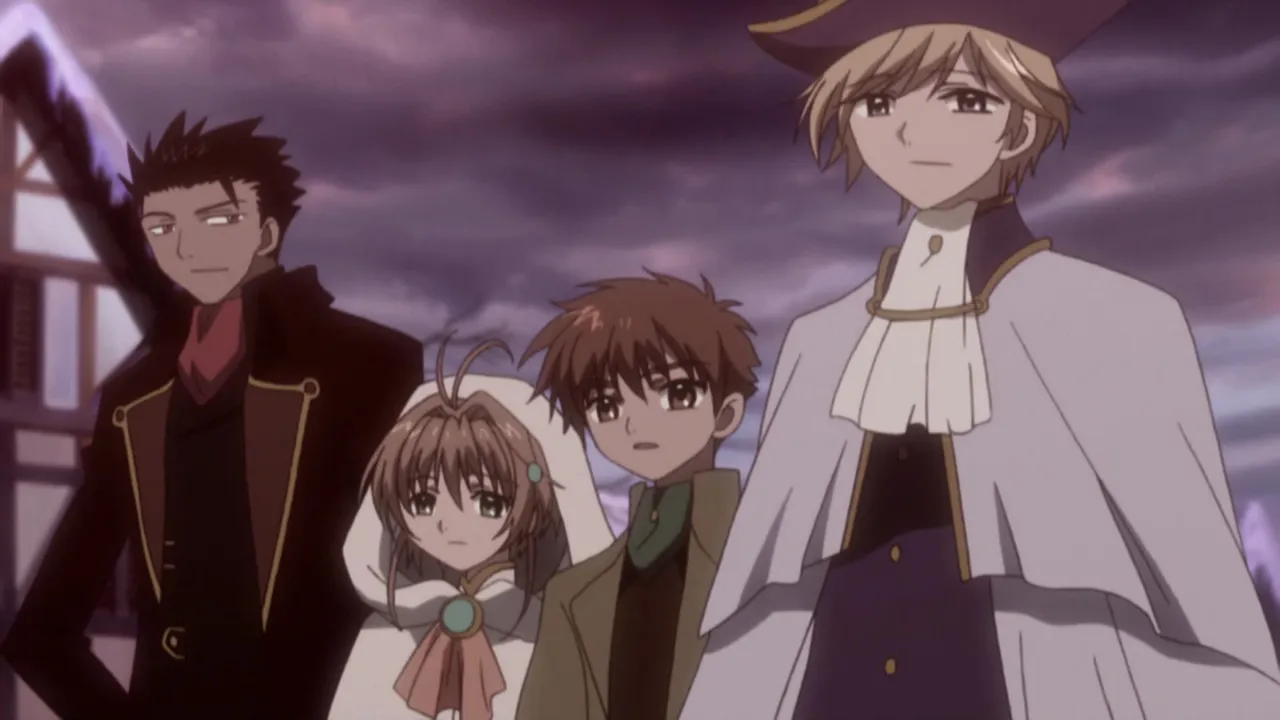 When Syaoran returns to his home for a change of clothes after studying the ruins, he meets his dearest and closest childhood friend Sakura, the princess of Clow Kingdom. She convinces him to stay longer, and the two wander the town shopping together. At the end of their excursion, she attempts to confess her love for him, but is interrupted and forced to return to the castle. When Syaoran returns to the ruins, he is surprised to find Sakura there. A mysterious force begins to draw her into the wall and causes her memories to manifest themselves in the form of feathers. When he pulls her to safety, her memories scatter across the dimensions. The priest Yukito tells him to seek out the help of the Dimensional Witch and sends the two to the dimension in which she resides. Upon arriving there, two others soon follow: Kurogane who is exiled from his dimension for killing excessively and Fai D. Flourite who is running away from the king of his dimension.