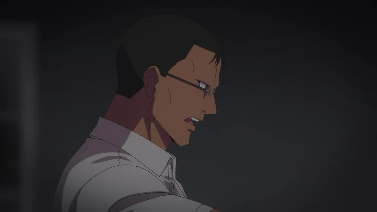 Fighter D and Hisui confront Yakushi Usukubo, the Head Director of the Monster Protection Society.