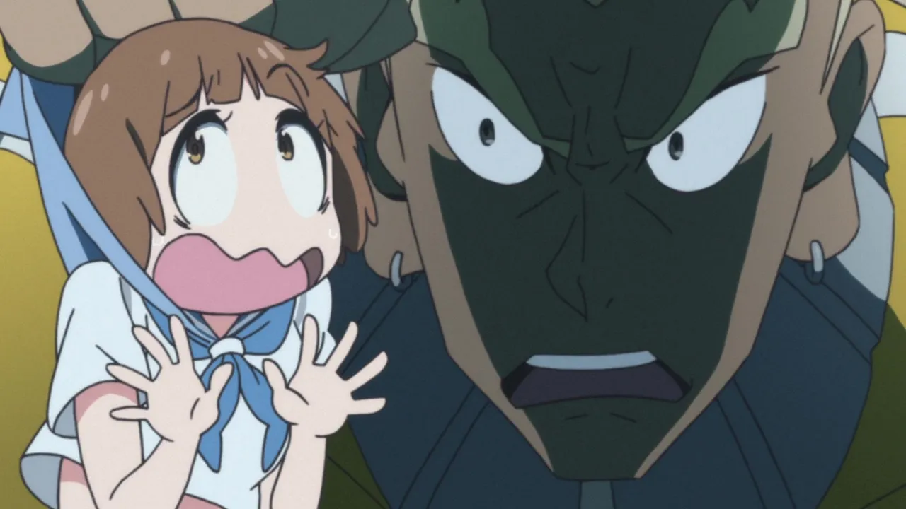 After freeing all the trapped students and citizens from the Life Fibers, the Elite Four fight against Nui while Mako helps with the evacuation.Meanwhile, Satsuki reveals how Ragyo had used her in Life Fiber experiments, along with her newborn sister, who was discarded by Ragyo when the experiment allegedly failed. However, Ragyo, who is able to heal her injuries, breaks free and takes control of the students, turning them into her personal army.
