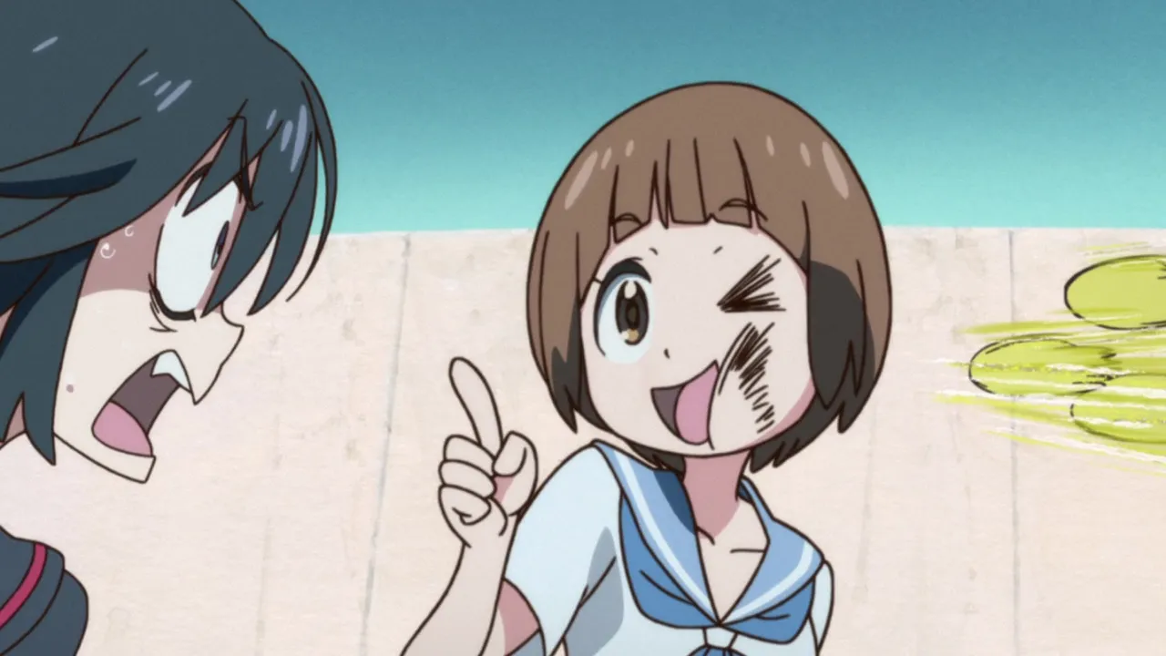 Weakened by her battle, Ryuko flees Honnouji Academy before collapsing in the street. Rescued, she's given food and shelter for night, and upon returning to the Academy faces off against Omiko Hakodate, the Girls' Tennis Club Captain, to repay the favor.