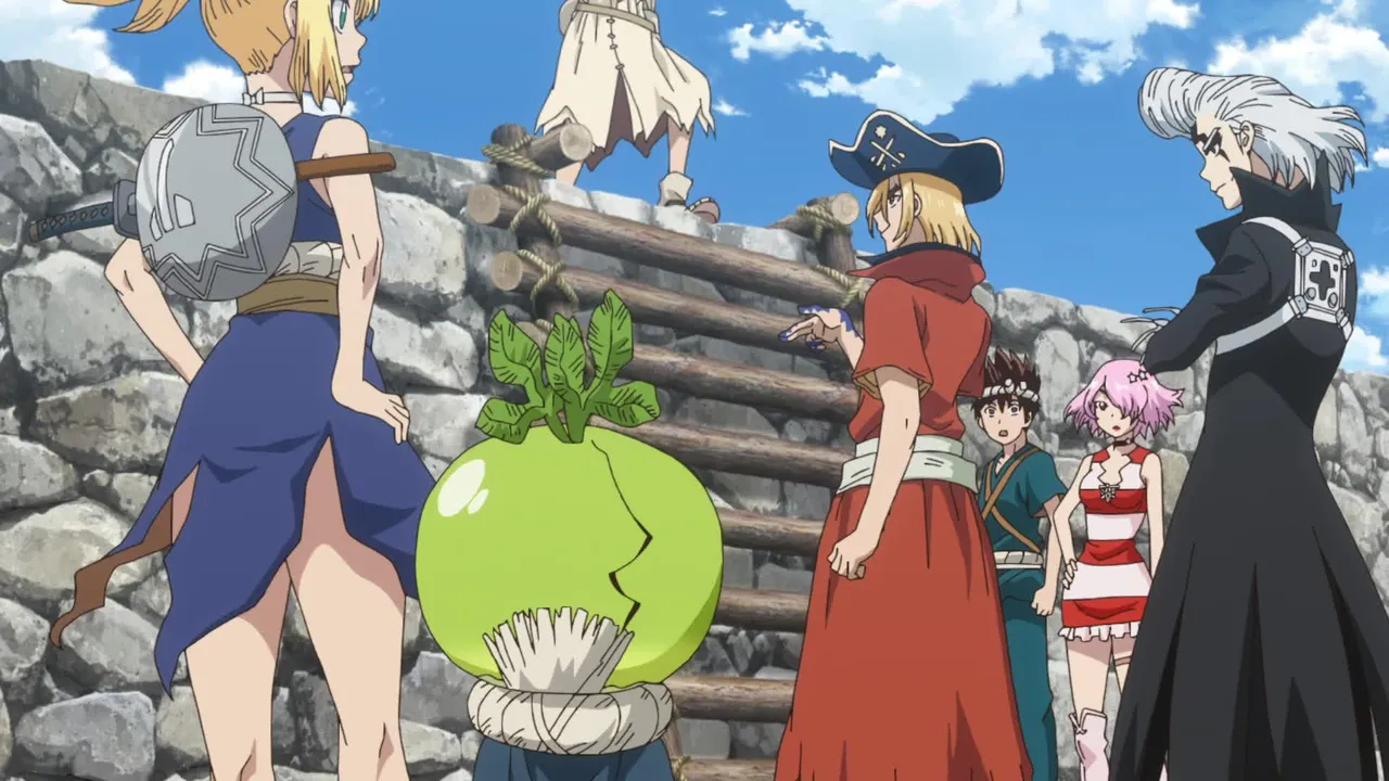 Senku and company must flee from Stanley's ship, but they have to make stops to refuel.