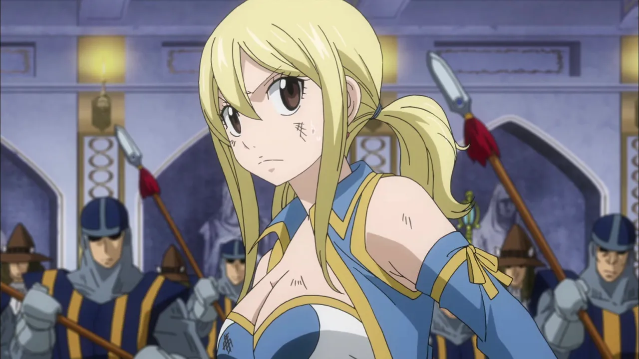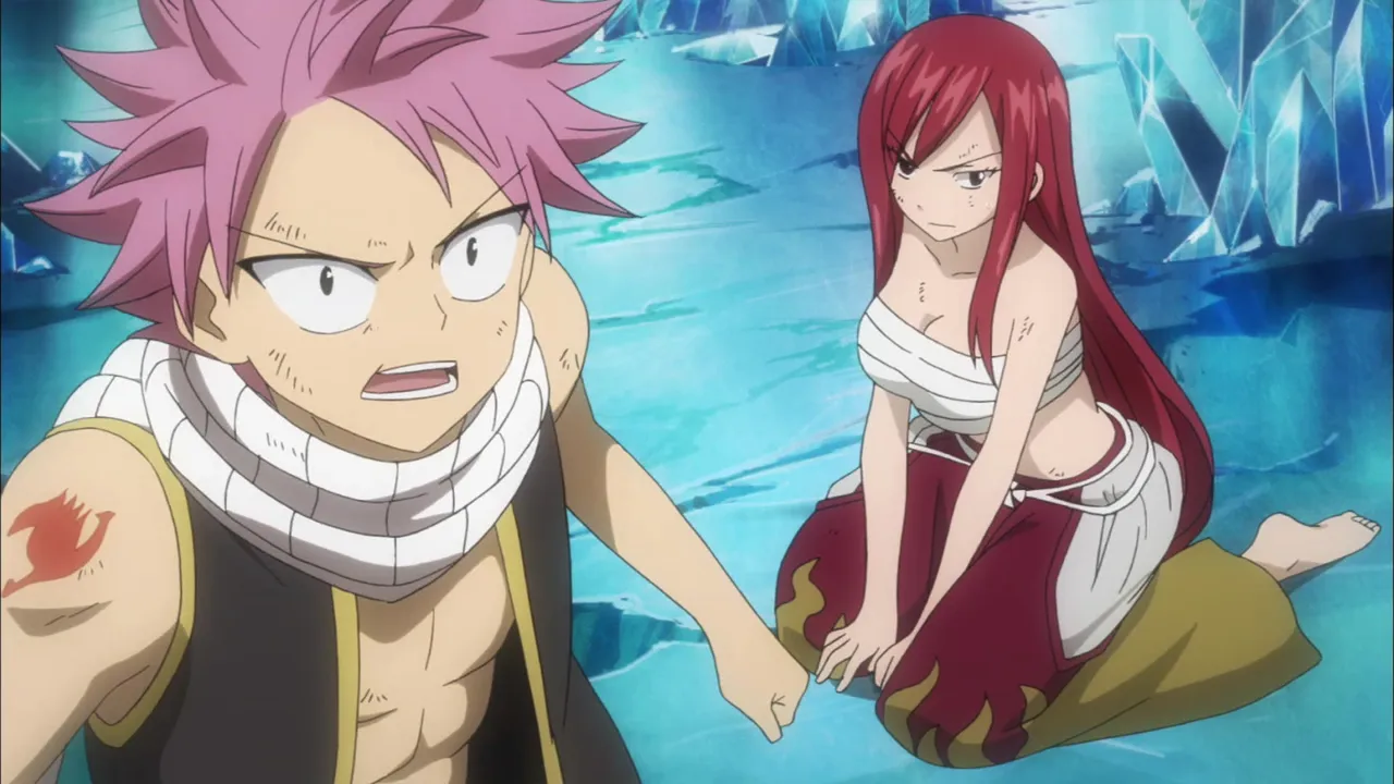 Erza's battle royale with Kagura finally ends in an unexpected way. Also, we learn of the untold connection between the two combatants. And will Natsu and his team ever escape from the palace with Lucy and future Lucy?!