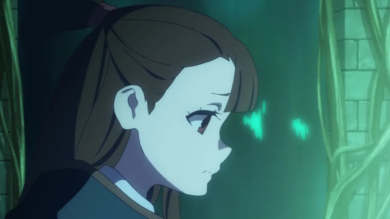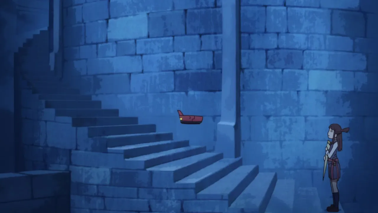 Ursula tells Akko about the final work, following Croix's more aggressive movements. While meeting Andrew, Akko notices some techno-magic hovering around the protesters. She chases after one of the cubes and comes across Croix, and discovers that Croix has been manipulating everyone's emotions in order to convert it into magical energy. While saving Akko, Ursula's identity is finally revealed to Akko. Akko also learns the disturbing truth behind her lack of magical ability.