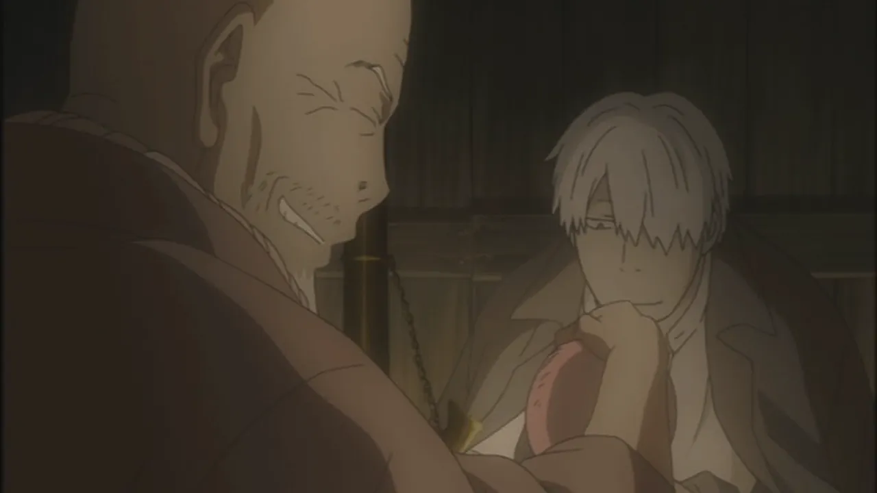 While on his journey, Ginko stumbles upon a town which has yielded a great crop this year, thanks to their ancestors. However, it is said that someone must be sacrificed in exchange. Ginko finds this peculiar and decides to investigate further, by going to see the village "Saishu-sama" (chief mourner) who may have something to do with it.