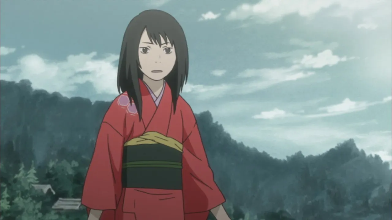 Just managing to cross the treacherous Kazura Bridge, Ginko meets up with a man on the other side who takes him to meet a lady called Hana, who fell from the same bridge 3 years ago. Even though Hana survived, all she does is sit under the sun and nothing else and nobody seems to know what's wrong with her. Hana is feared to be a "Tanimodori", which are people whose minds and memories are wiped clean and they die on the night that the "One Night Bridge" shows up. From the info gathered Ginko knows that Hana is possessed by a Mushi called a "Nisekazura".