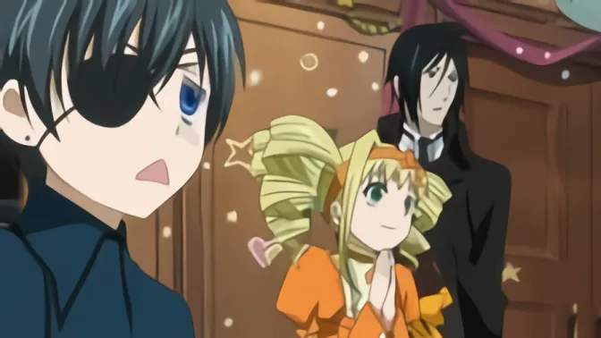 Ciel's servants show off their hidden talents in an effort to cheer up their master and protect the Phantomhive Estate. Within the mansion, Ciel teaches Elizabeth about chess until sundown. The backgrounds of Maylene, Bard, and Finian are revealed in a series of flashbacks.