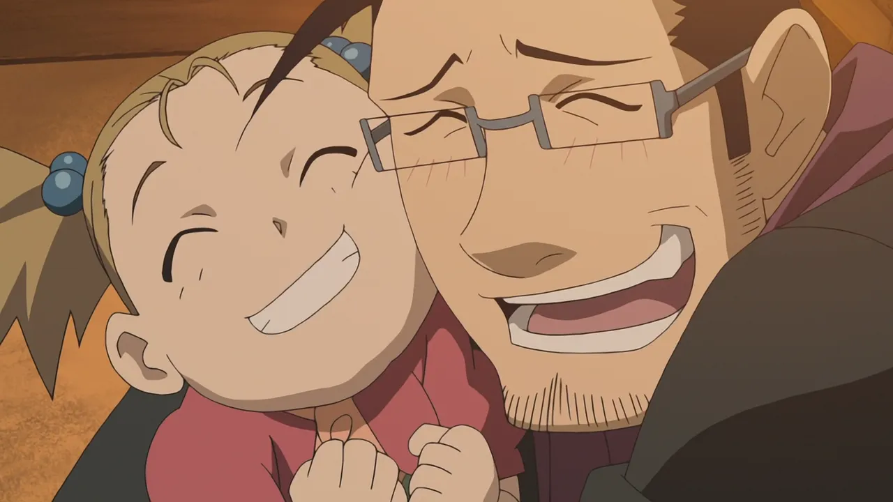 After their encounter with Scar, Ed's automail and Al's armor need to be repaired, so Major Armstrong escorts them to their hometown of Risembool. On their way there, they spot Dr. Marcoh, a scientist who helped create the Philosopher's Stone, and try to convince him to give them the location of the Stone's research data.