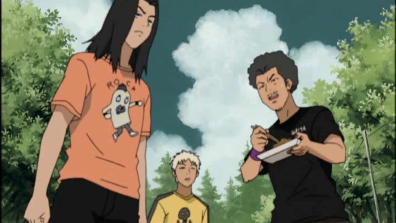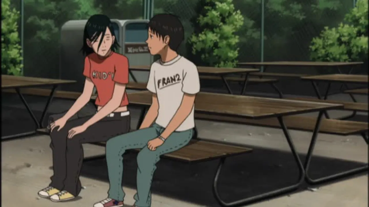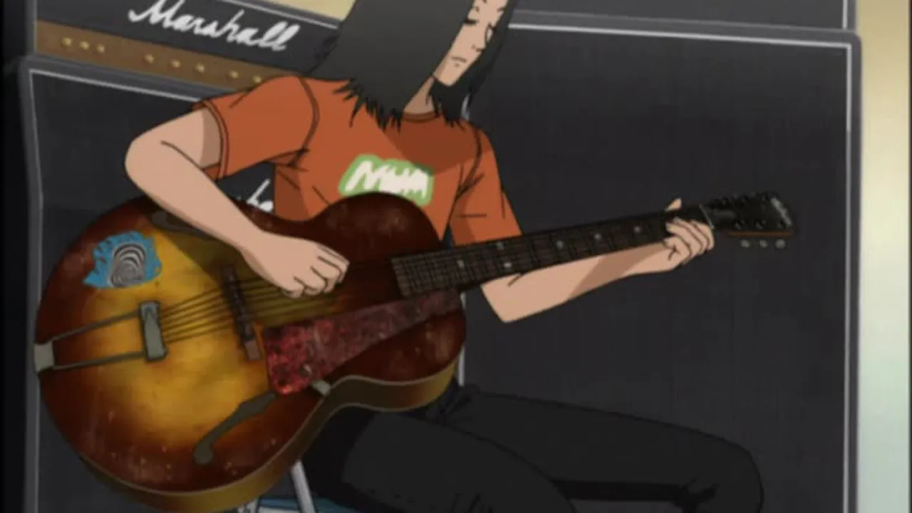Koyuki tries to memorize the scales at Saitou's place. Later we can see Koyuki talking with the bullies and then scolded in the teacher's office. Maho meets with him, and at Saitou's place, Koyuki tells her why he started to work for the old man. This marks the first appearance of Ryusuke's guitar, "Prudence" ("Lucille" in the Japanese original), notable for the several bullet holes it bears.