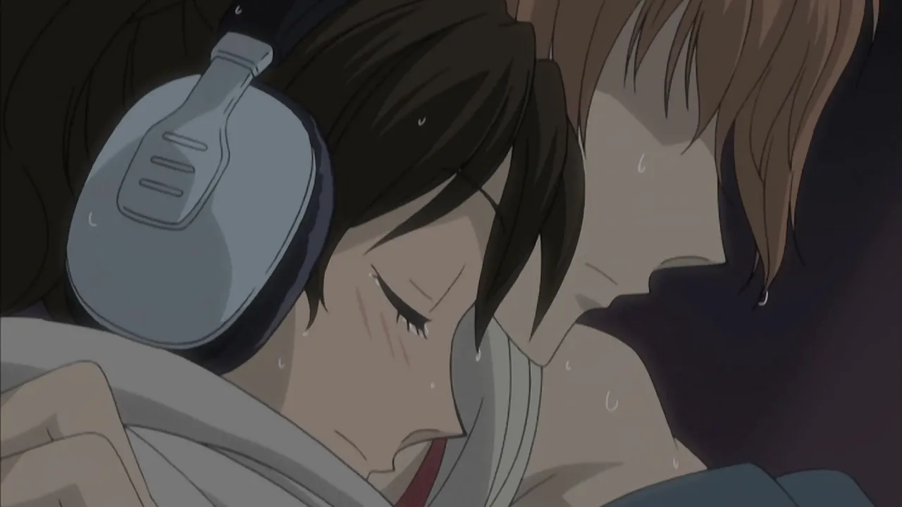 After Ritsu walks in on Haruhi changing, he later joins the Host Club, but as a customer. When he insists on Haruhi as his host, the other hosts get nervous and the clients get excited. Tamaki starts to realize his feelings for Haruhi, and Ritsu nearly goes insane, while Haruhi remains blissfully oblivious.