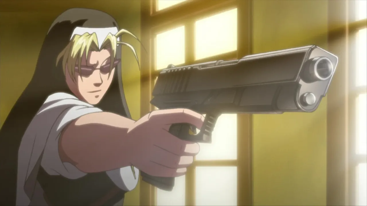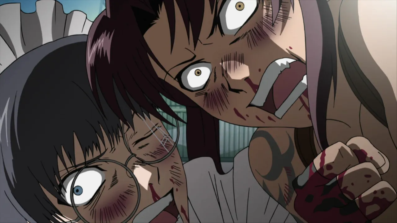 Roberta continues the chase as she is on top of the Black Lagoon’s car trying to get back the kidnapped Garcia. After they crash into the wall of a cargo area, Revy awakens and decides to fight Roberta in a duel with each girl wielding two pistols. The shootout continues until it is interrupted by Balalaika and her army. She informs everyone some recent events which changes the situation of the fight, and reveals the true identity of Roberta!