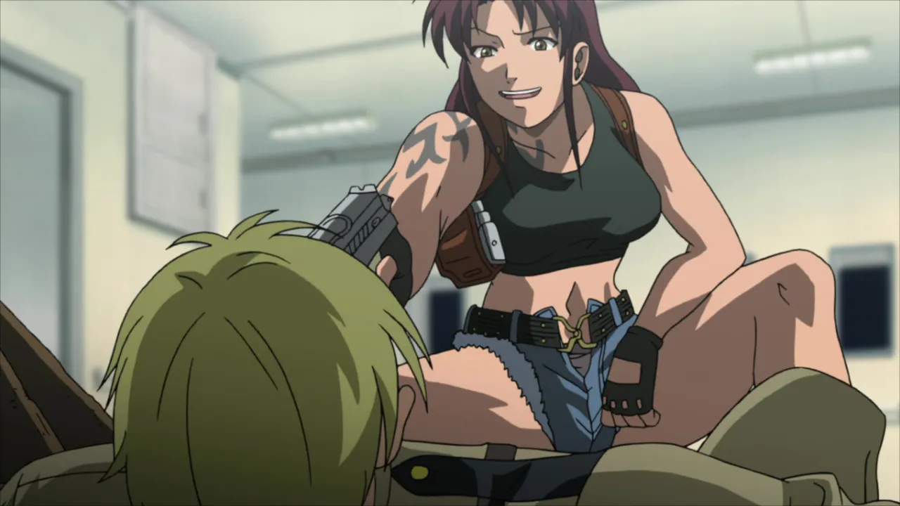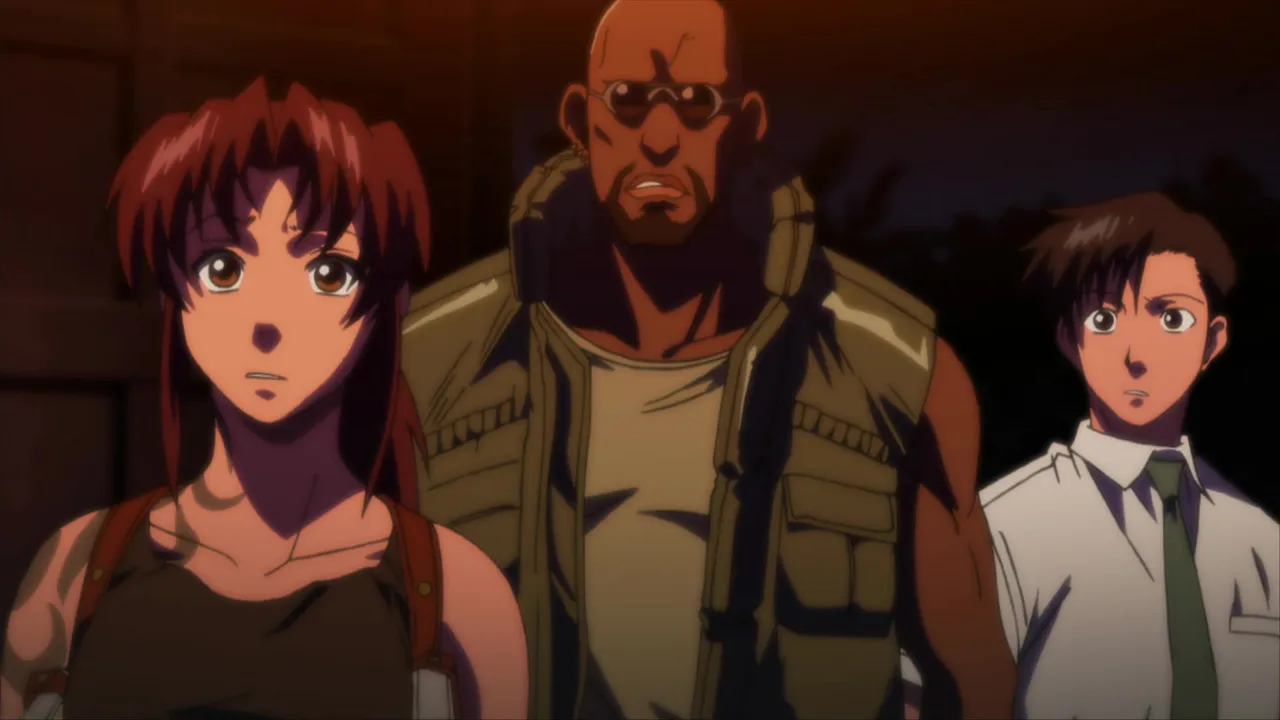Okajima Rokuro is a Japanese businessman in a town full of Japanese businessmen. His normal day consists of social drinking with clients and being kicked around by his bosses. He finally gets a break though, as he's sent by his company to the tropical seas of Eastern China to deliver a disc. But his boat gets hijacked by a band of mercenaries hired to retrieve the disc. Rock (as he is newly dubbed by his captors) catches the interest of the only female merc Revy as she thinks he's worth a ransom, taking him hostage. However, the disc that was stolen has a terrible secret that's unknown to Rock, which causes massive confusion and chaos for both him and his kidnappers.