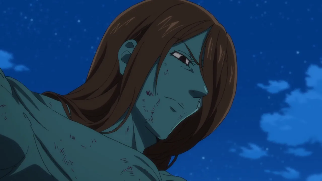 With Ban and the Holy Knights paralyzed by Estarossa’s powers, Escanor shows up to thwart the fall of Liones at the hands of the Ten Commandments.