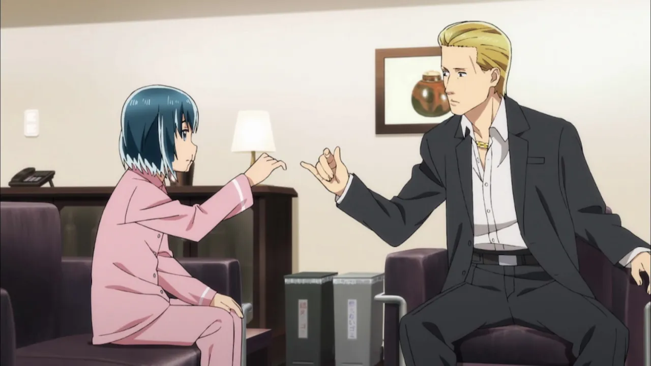 Telekinetic girl Hina drops into the home of vase-collecting yakuza Nitta, who she then coerces into letting her stick around by threatening to destroy his entire collection.