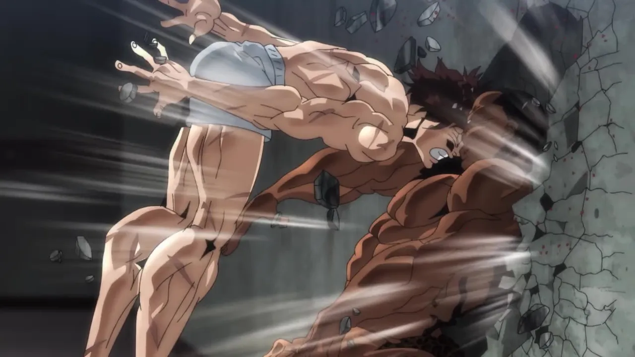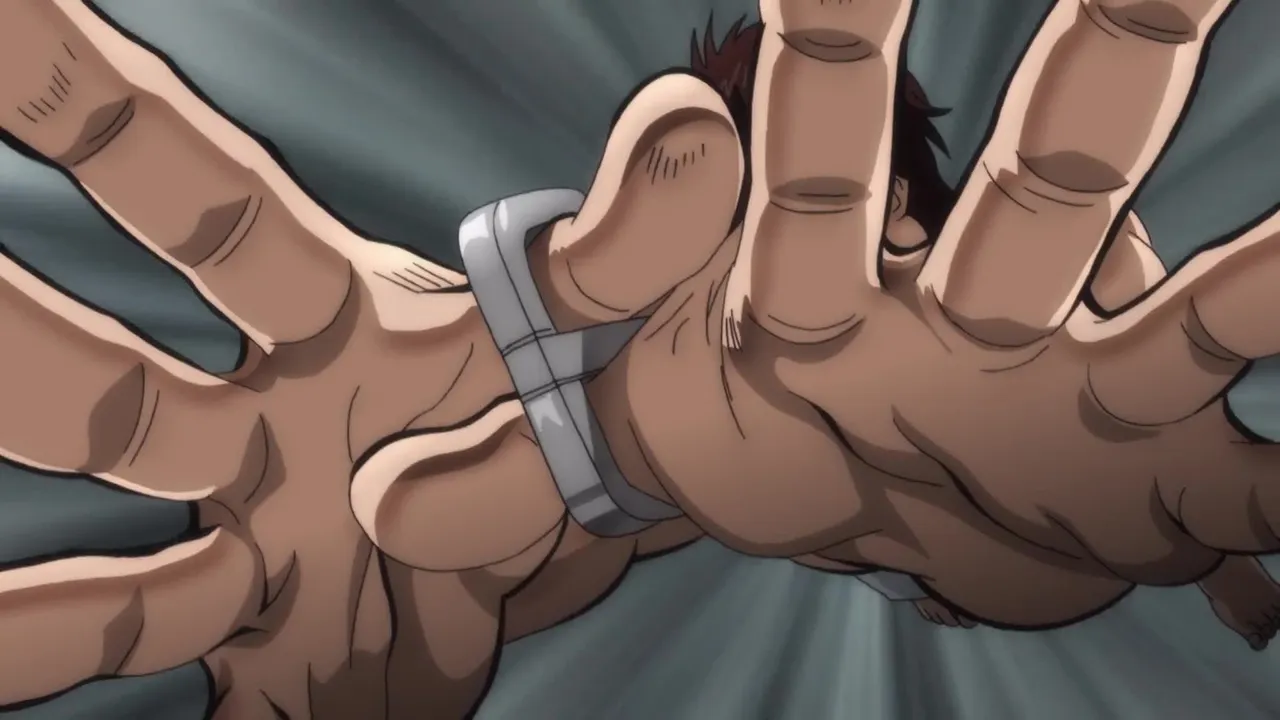 To train for his eventual battle against his father, Baki spars against an imaginary giant praying mantis he’s created in his mind.