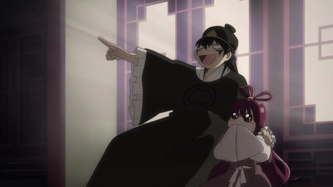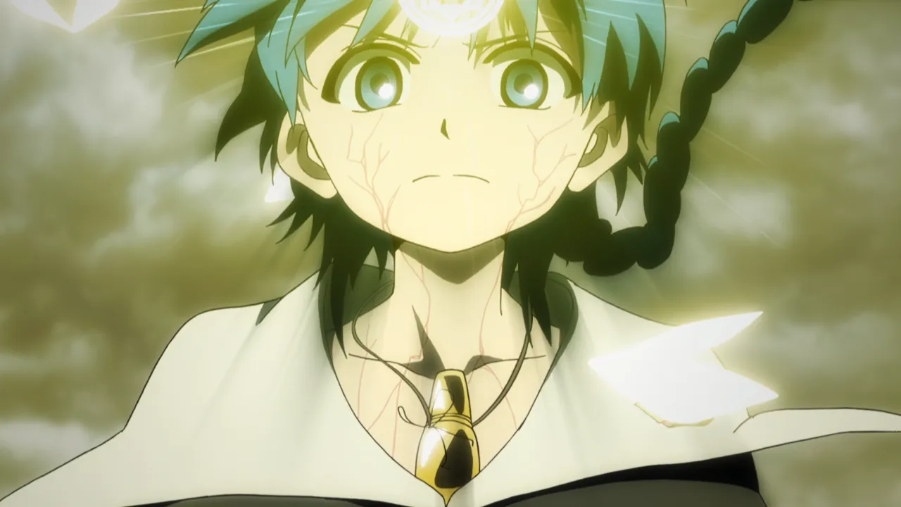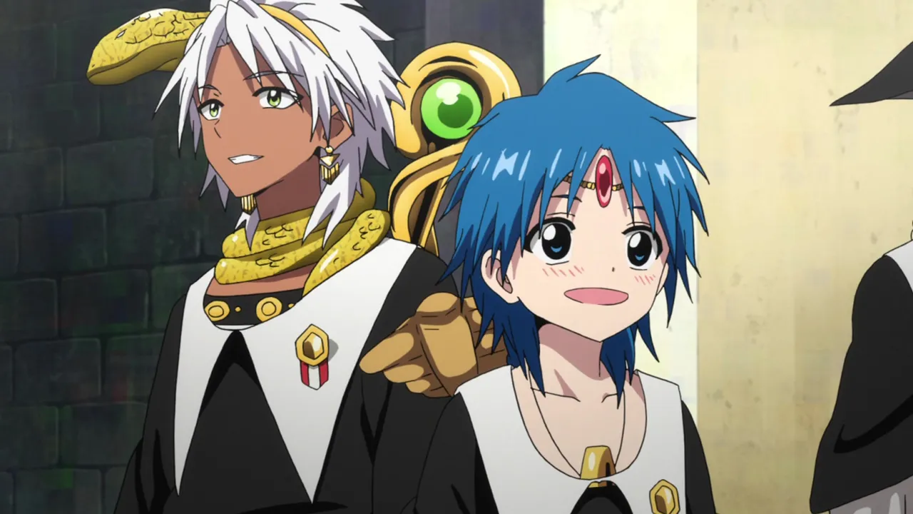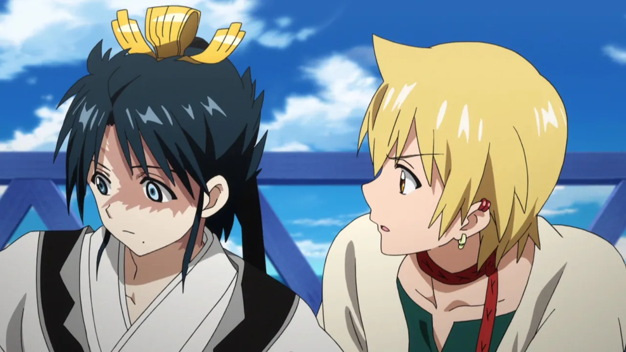 Aladdin and his friends return to Sindria and are saluted by the people for conquering Zagan. During the festivities, Hakuryuu and Kougyoku hear that they were summoned back to the Kou Empire. It is also revealed that Dunya is resting at the palace, but refuses to talk to anyone beside Aladdin. By inspecting Dunya's dark metal vessel, Sinbad and his companions discover that it was crafted in Yamuraiha's home country, Magnostadt implying that said nation is somehow involved in Al-Thamen's plans. However, when Sinbad tries to inquire Dunya about it, the vessel fragment inside her body reacts, putting her life in danger. Aladdin manages to save her using Solomon's Wisdom but soon after, they learn that with her condition, she does not have much time left to live. Once reunited with Alibaba and Morgiana, Aladdin informs them that he will soon embark on a new journey by himself.