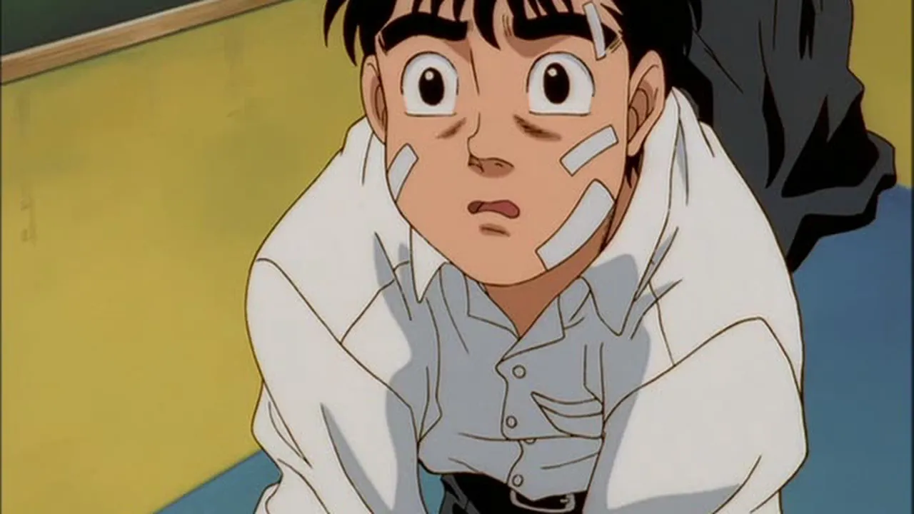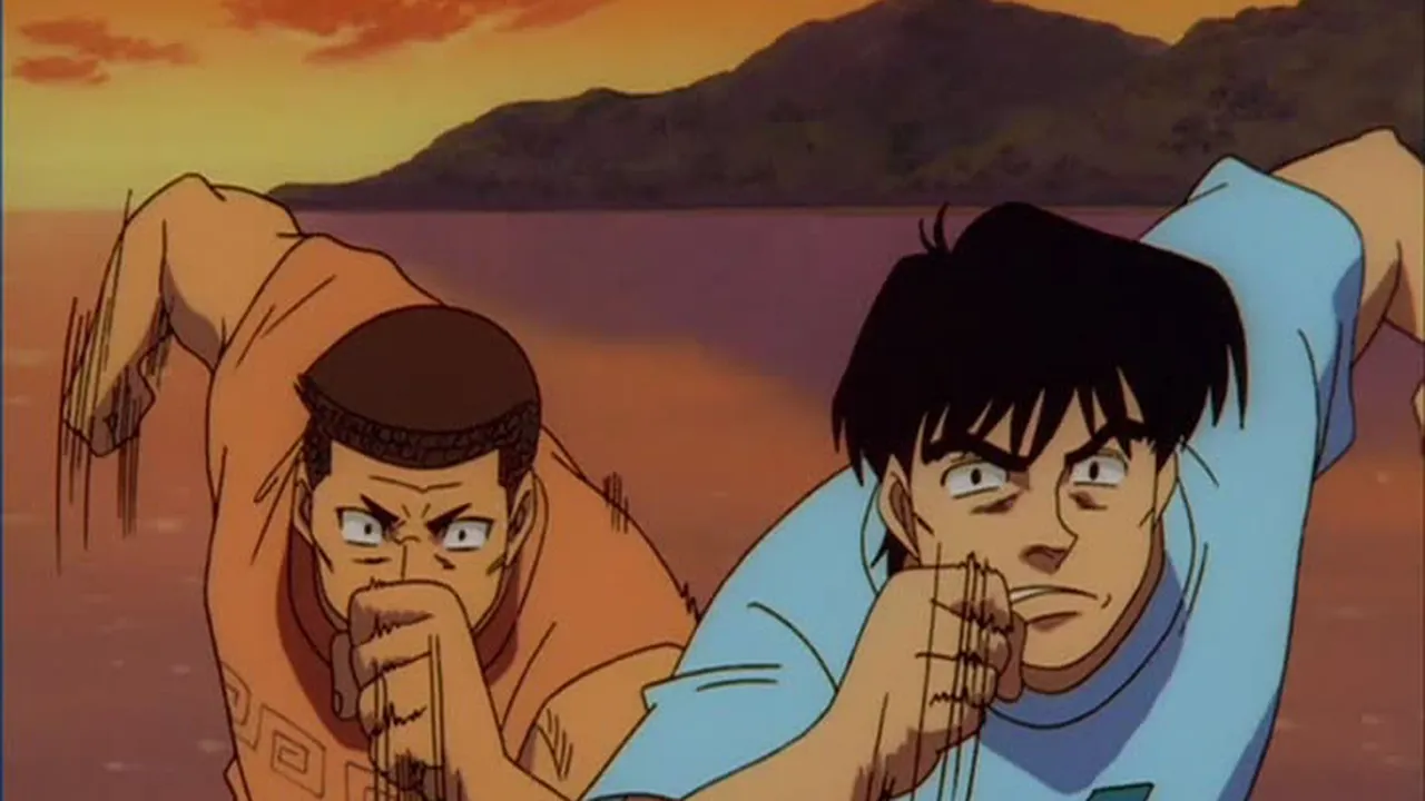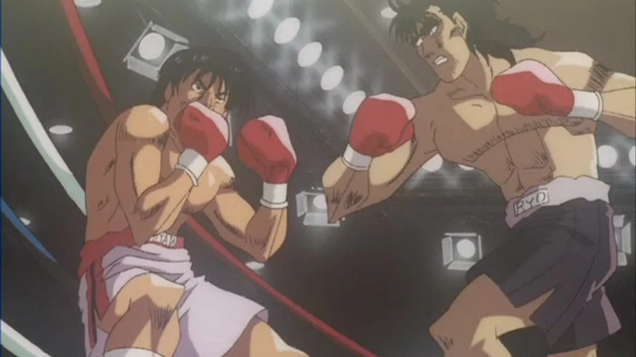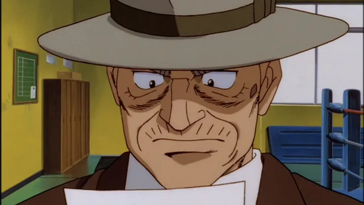 Sendou Takeshi, the "Naniwa Tiger," returns to the ring! But it's his sparring partner, Sawamura Ryuuhei, who knocks Ippo for a loop when he calls the Dempsey Roll a "clumsy technique" and declares he's gunning for the Featherweight Title!