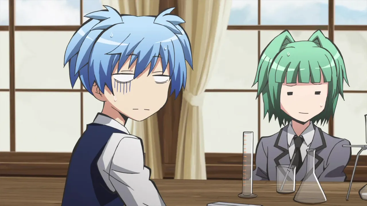 Irina is greeted by her former master, retired assassin Lovro, who thinks she should give up as she has no chance of killing Koro-sensei. Hoping to prove him wrong, Koro-sensei proposes a match between Irina and Lovro to see who will be the first to 'kill' Karasuma, offering Karasuma his own incentive should neither win. Despite Lovro's doubts after he fails to kill Karasuma himself, Irina manages to use what she's learned targeting Koro-sensei to get close, with Karasuma accepting defeat at her hands and Lovro acknowledging her efforts. Later, Nagisa, Karma, and Ritsu accompany Koro-sensei on a mach speed trip to Hawaii to watch the premiere of a new movie, getting a lecture along the way and learning a lot more about Koro-sensei's point of view. On their way back, a man in a while cloak observes alongside a boy, the second transfer student who claims to be Koro-sensei's brother.