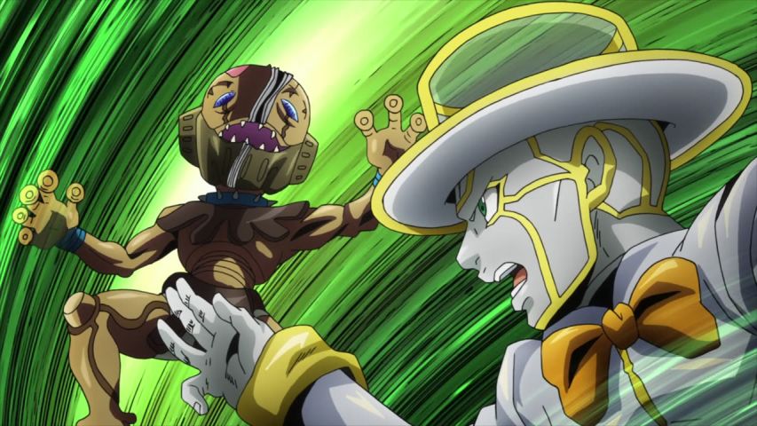 Red Hot Chili Pepper shows himself in front of Josuke. He seems to be more powerful than Jotaro, and is able to travel anywhere where electricity flows. Jotaro summons Josuke, Okuyasu, and Koichi and tells them that a certain someone is heading toward Morioh...