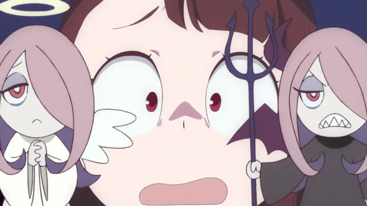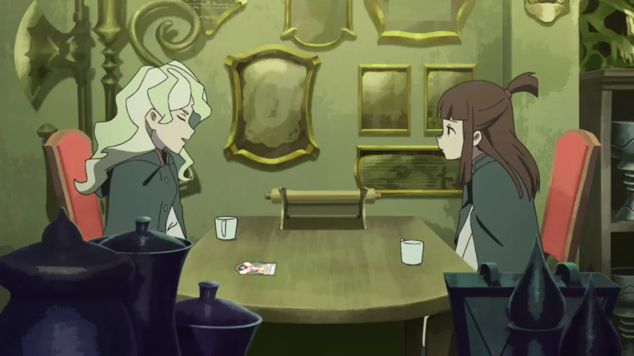 Ursula tells Akko about the final work, following Croix's more aggressive movements. While meeting Andrew, Akko notices some techno-magic hovering around the protesters. She chases after one of the cubes and comes across Croix, and discovers that Croix has been manipulating everyone's emotions in order to convert it into magical energy. While saving Akko, Ursula's identity is finally revealed to Akko. Akko also learns the disturbing truth behind her lack of magical ability.