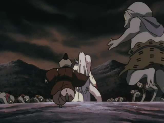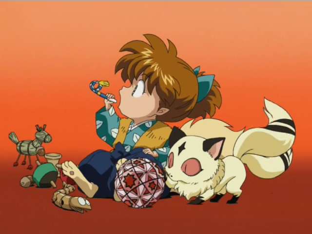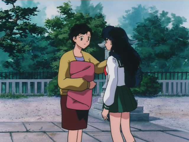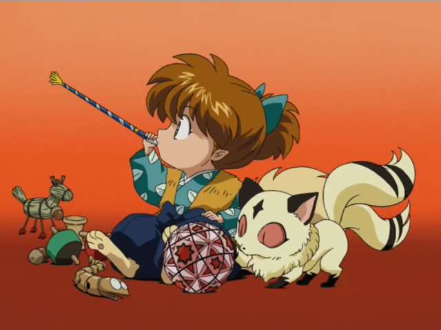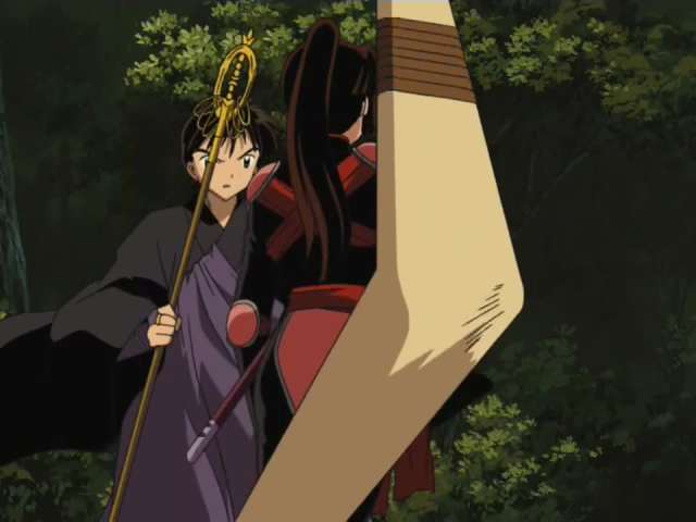Inuyasha brings Kagome back to the past, and the two team up to take the Shikon shard back from Yura.