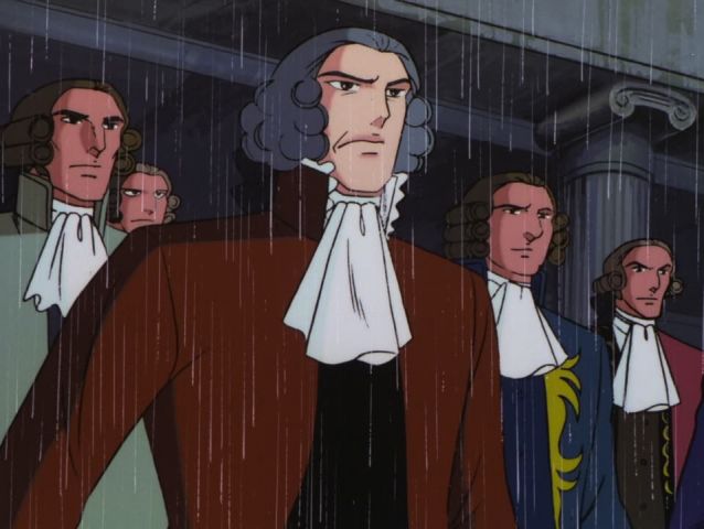 Du Barry fakes crying to get the King enraged at Antoinette and plots with Orleans to get Prince Louis killed in a hunting "accident". The plot fails when Louis drops the rigged gun on the ground, causing it to harmlessly explode. The King and Du Barry pressure Mercy to get Marie to "correct her attitude". He tells the Dauphine that the treaty between Austria and France would be broken if this continues. Not wanting Europe to be engaged in war, Antoinette frustratingly relents, but her three aunts prevent this from happening at the night's next party due to their personal hatred for Du Barry. On New Years Day, Antoinette finally speaks two sentences to Du Barry, and runs from the party in tears, telling Oscar that she would never speak to her again. Oscar, admiring her dignity, swears to protect Antoinette with her life.