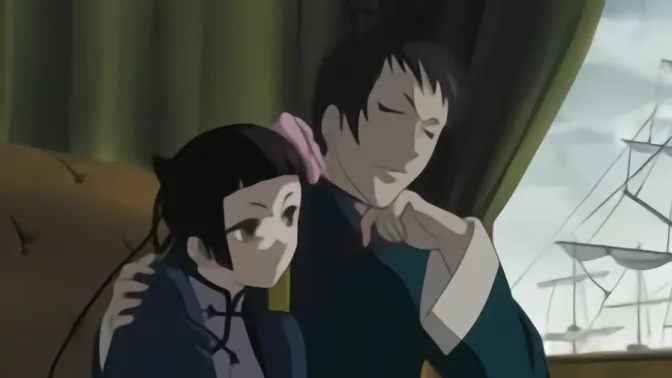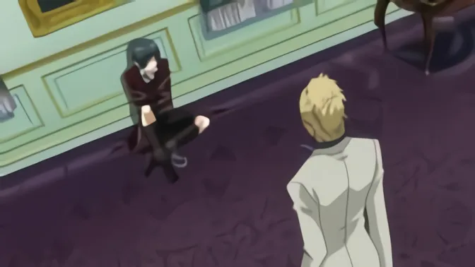 Elizabeth, Ciel's fiancee, arrives at the Phantomhive Estate for a visit. While Ciel does not wish to dance with her, Sebastian convinces him to learn to dance for the sake of preserving his social reputation, and teaches him a simple waltz. Later, Elizabeth is unhappy with Ciel wearing his own ring in favour of the one she has brought him, and she breaks Ciel's ring by throwing it on the floor. Ciel comes close to hitting Elizabeth but is stopped by Sebastian, who explains to Elizabeth that Ciel's ring is the Phantomhive family's ring. Elizabeth is upset, but Ciel throws the ring out of the window and declares that he is the head of the Phantomhive family, with or without it. Ciel then wipes Elizabeth's tears away and dances with her. That night, Sebastian finds Ciel depressed in bed and produces Ciel's ring, undamaged. Ciel wonders how many Phantomhives have died wearing the ring. He tells Sebastian to stay by his side until he falls asleep, amusing Sebastian and causing him to comment on Ciel showing his weaknesses to him.