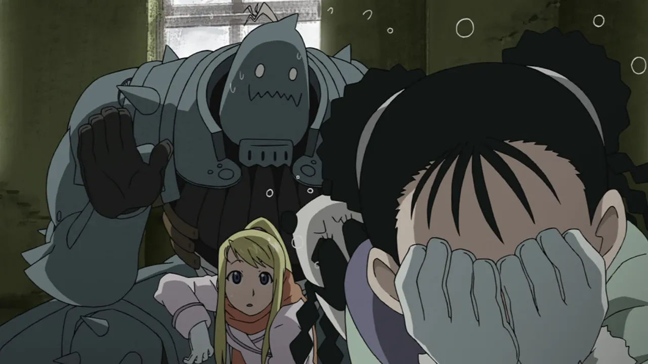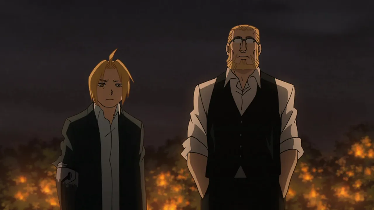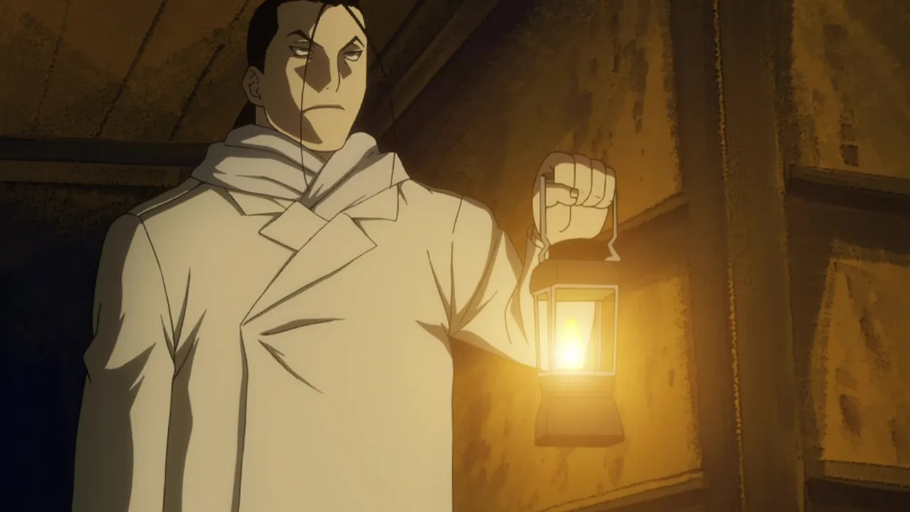 After their encounter with Scar, Ed's automail and Al's armor need to be repaired, so Major Armstrong escorts them to their hometown of Risembool. On their way there, they spot Dr. Marcoh, a scientist who helped create the Philosopher's Stone, and try to convince him to give them the location of the Stone's research data.