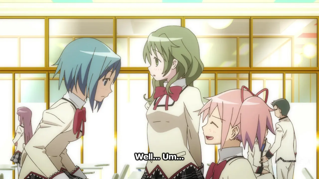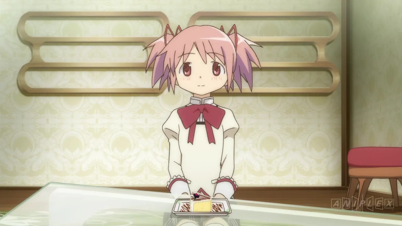 Madoka and Sayaka find themselves in a desperate situation and are rescued by Mami Tomoe, a magical girl. Afterward, Mami invites them to her house.