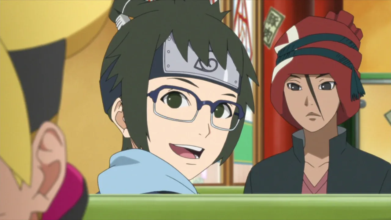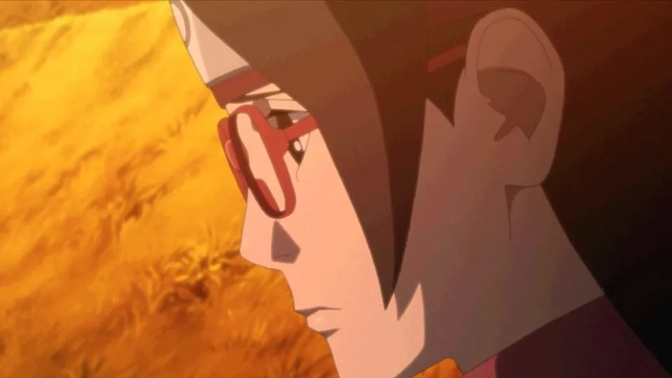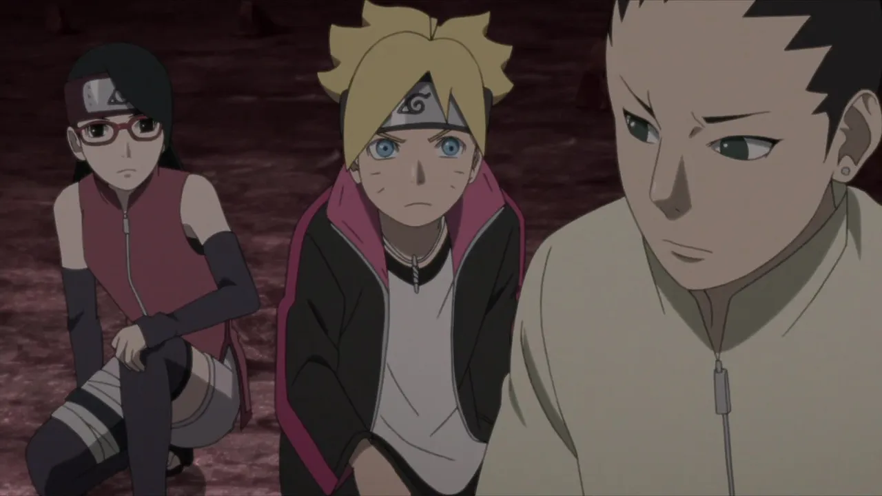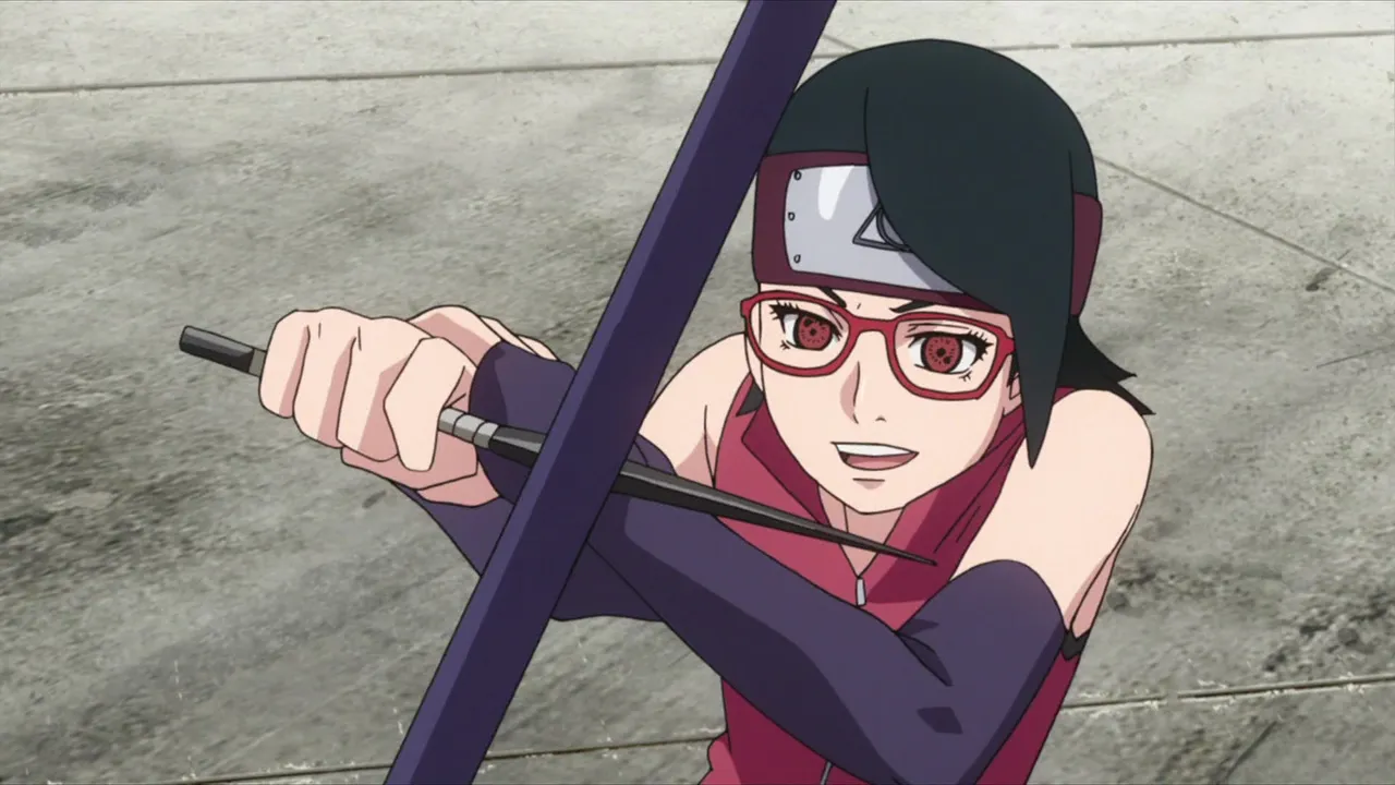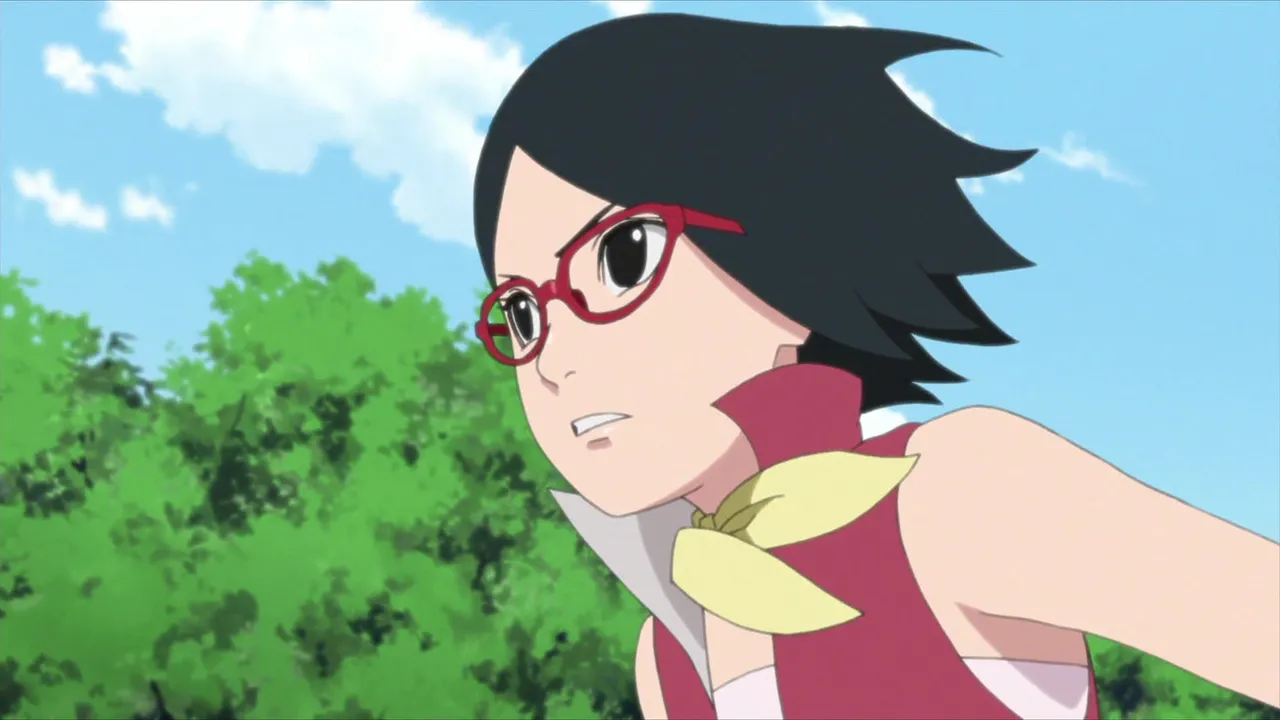Sarada is in shock after Sakura is captured by Shin's jutsu. Even Naruto, with his exceptional tracking skills, is unable to locate her. Then Sasuke discovers countless Sharingan embedded in Shin's arm. Following clues gleaned from Shin's arm, they come upon the laboratory of the heinous Hidden Leaf criminal, Orochimaru, who has been conducting research on Forbidden Jutsu. There, Sarada meets her father's former partners Suigetsu Hozuki and Jugo. She then asks Suigetsu to look into who her real mother is.