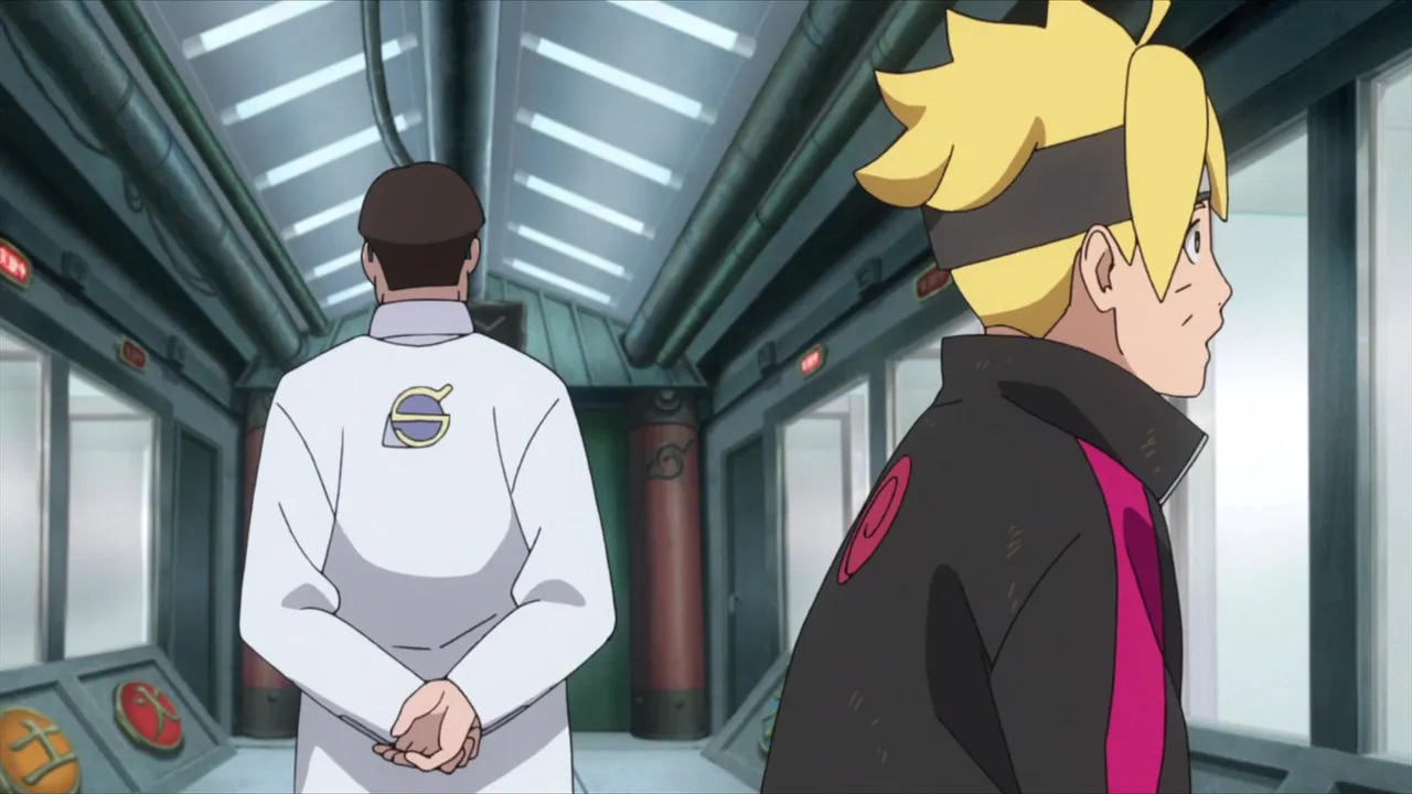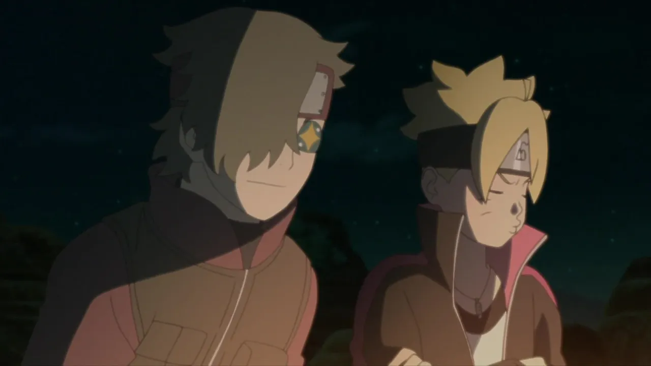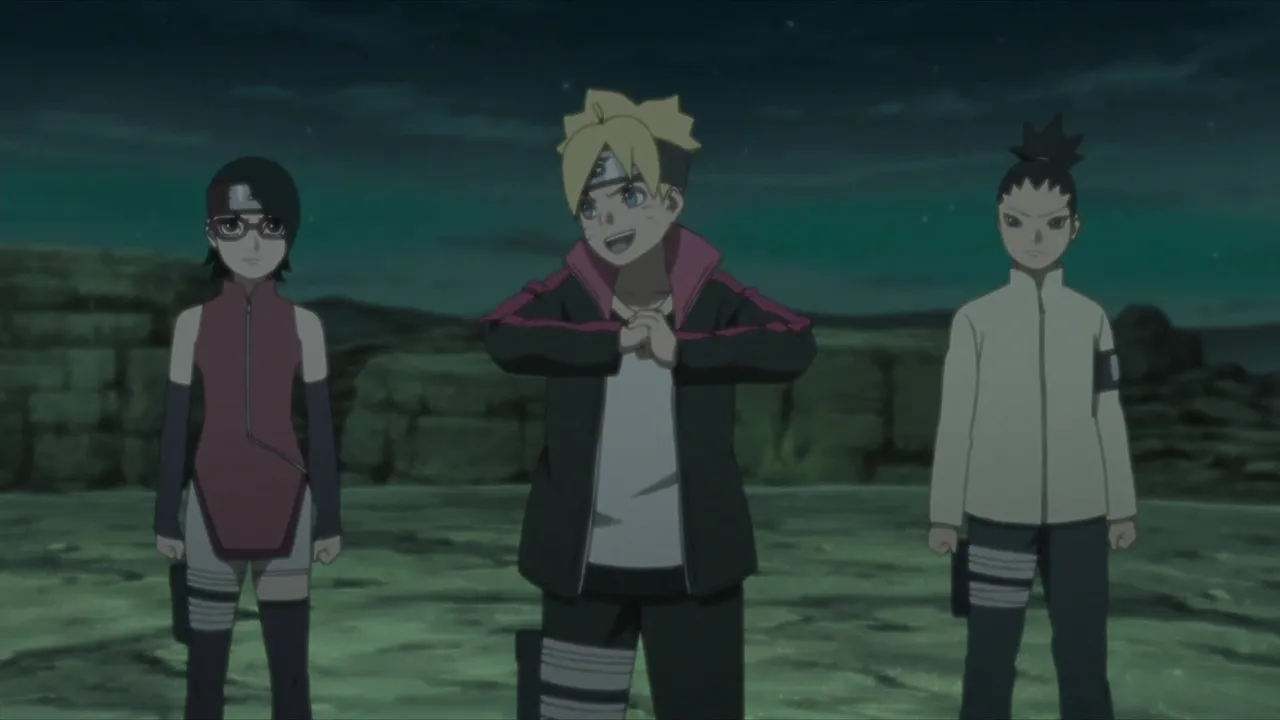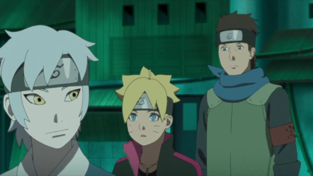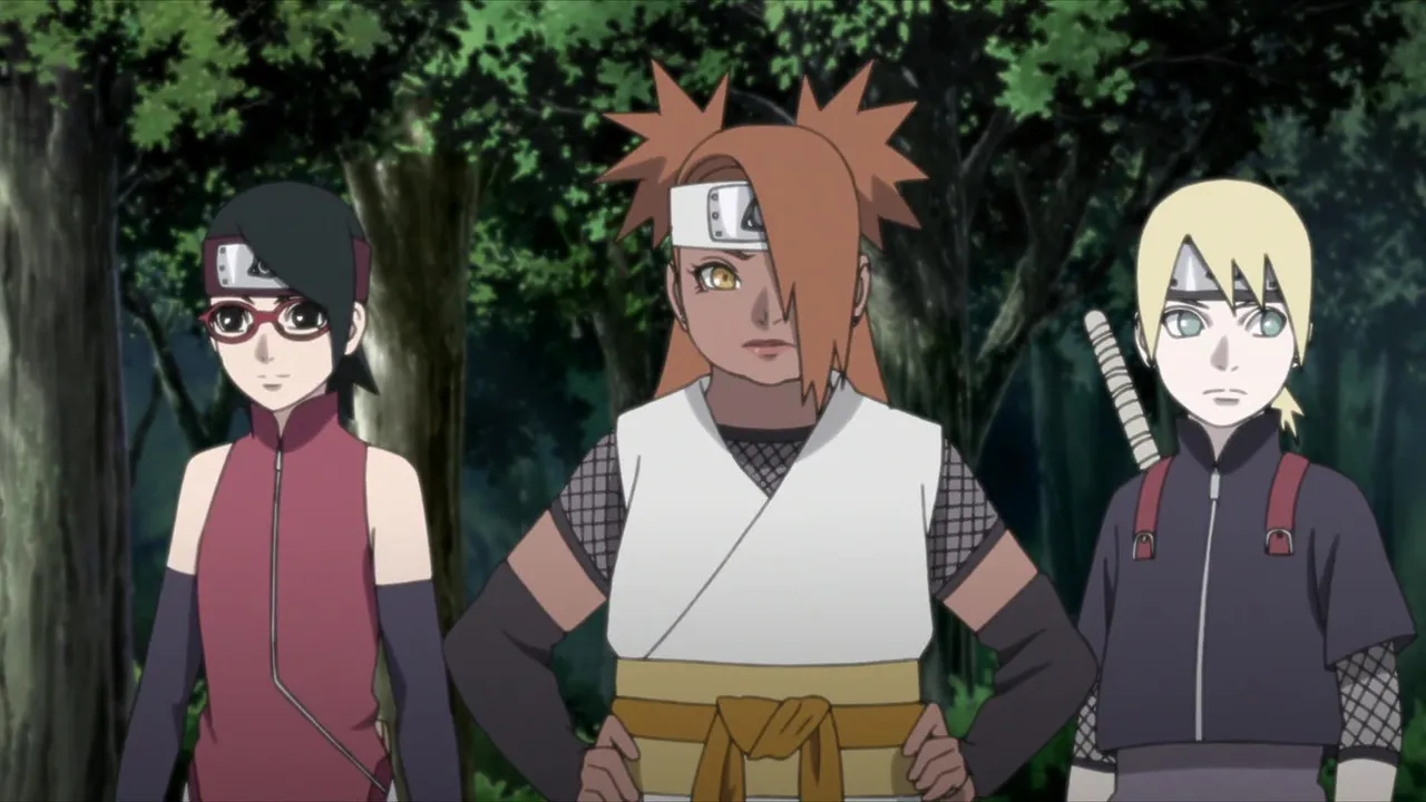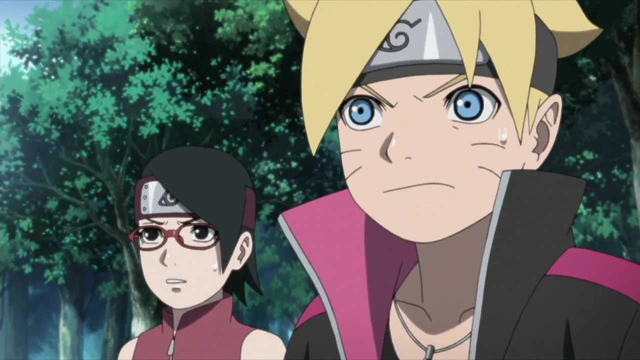 Sarada is in shock after Sakura is captured by Shin's jutsu. Even Naruto, with his exceptional tracking skills, is unable to locate her. Then Sasuke discovers countless Sharingan embedded in Shin's arm. Following clues gleaned from Shin's arm, they come upon the laboratory of the heinous Hidden Leaf criminal, Orochimaru, who has been conducting research on Forbidden Jutsu. There, Sarada meets her father's former partners Suigetsu Hozuki and Jugo. She then asks Suigetsu to look into who her real mother is.