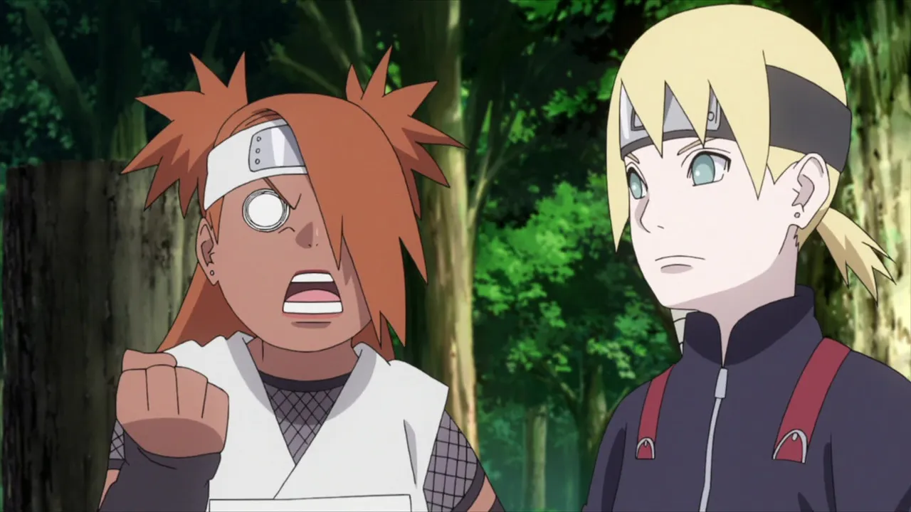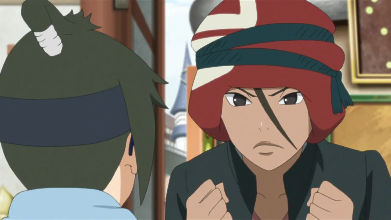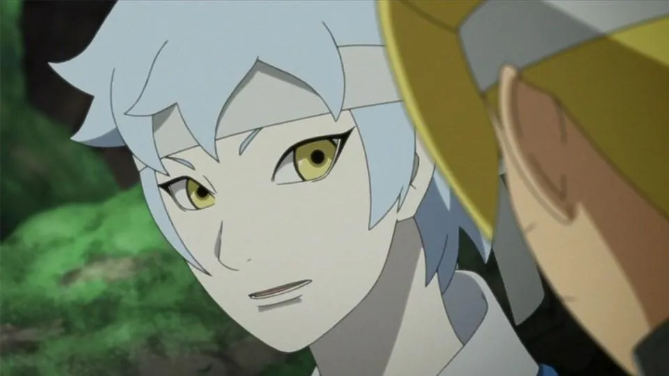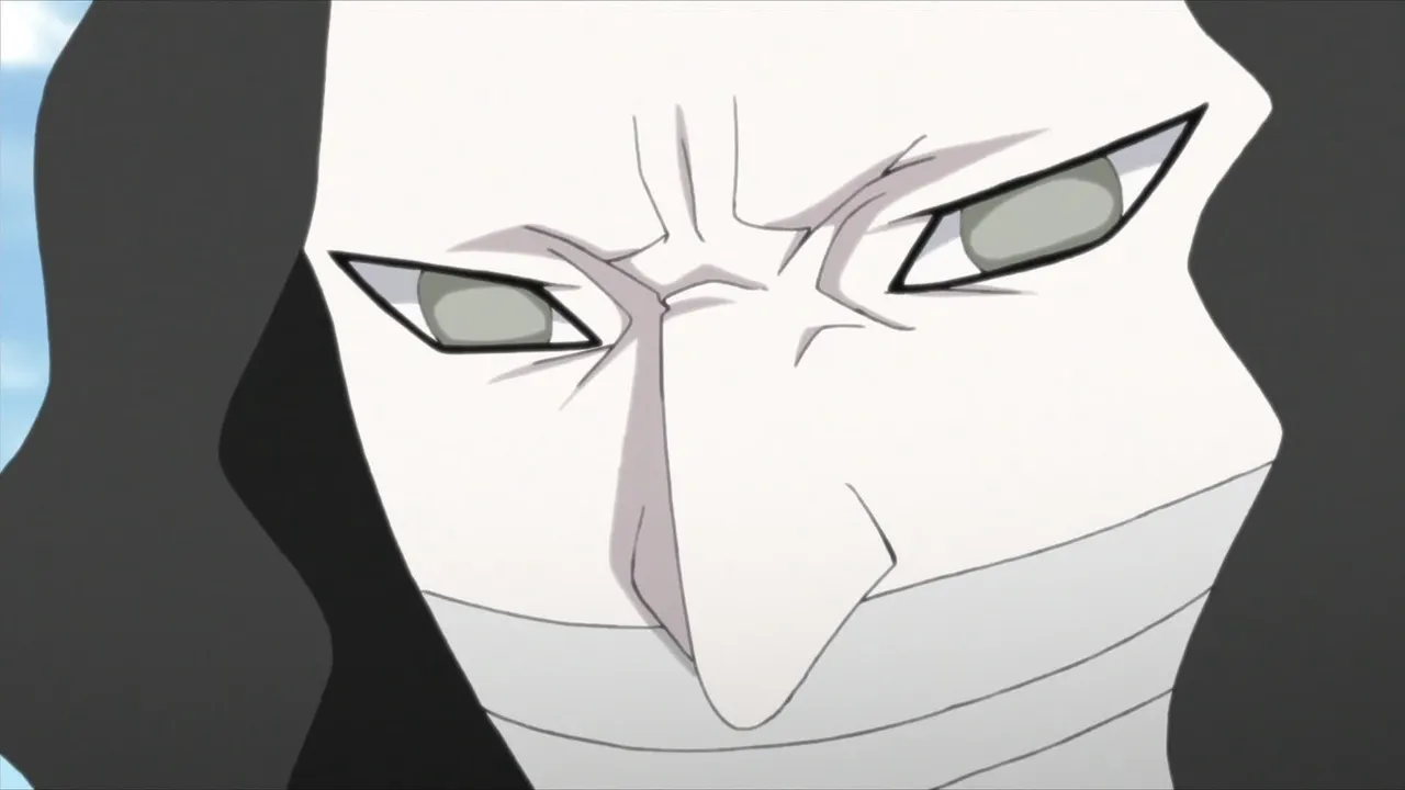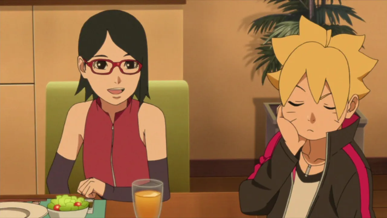 Sarada is in shock after Sakura is captured by Shin's jutsu. Even Naruto, with his exceptional tracking skills, is unable to locate her. Then Sasuke discovers countless Sharingan embedded in Shin's arm. Following clues gleaned from Shin's arm, they come upon the laboratory of the heinous Hidden Leaf criminal, Orochimaru, who has been conducting research on Forbidden Jutsu. There, Sarada meets her father's former partners Suigetsu Hozuki and Jugo. She then asks Suigetsu to look into who her real mother is.